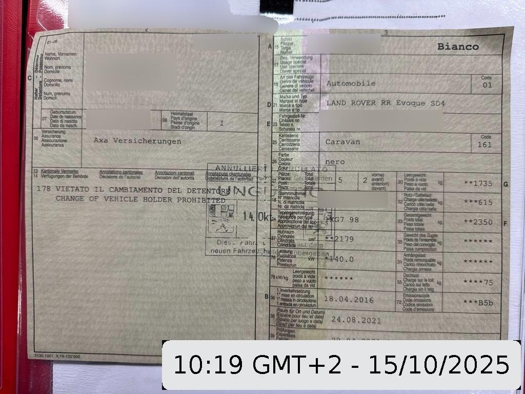 | Fahrzeugausweis | Vorhanden |
