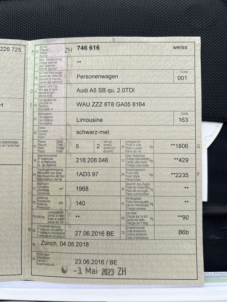 | Numero telaio | WAUZZZ8T8GA058164 |