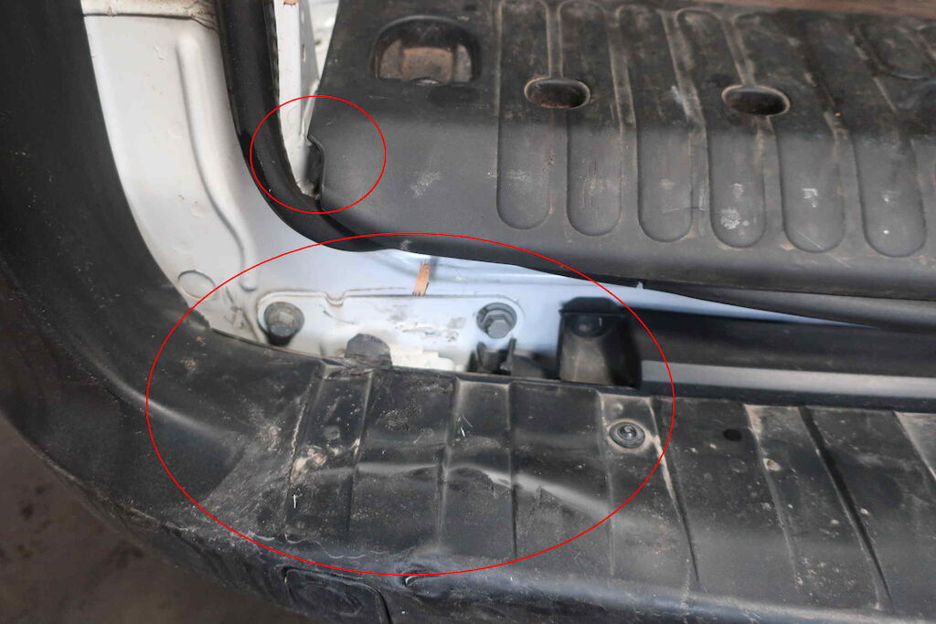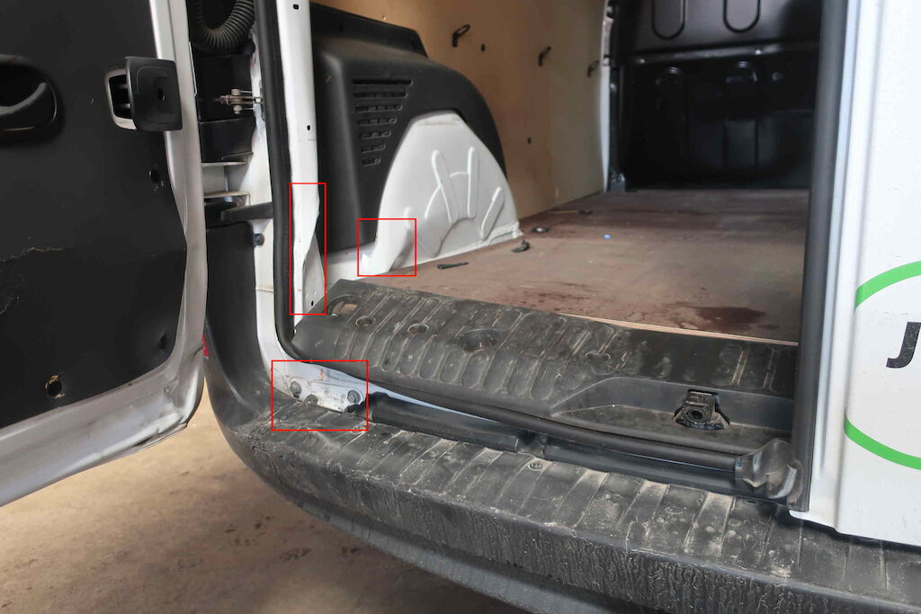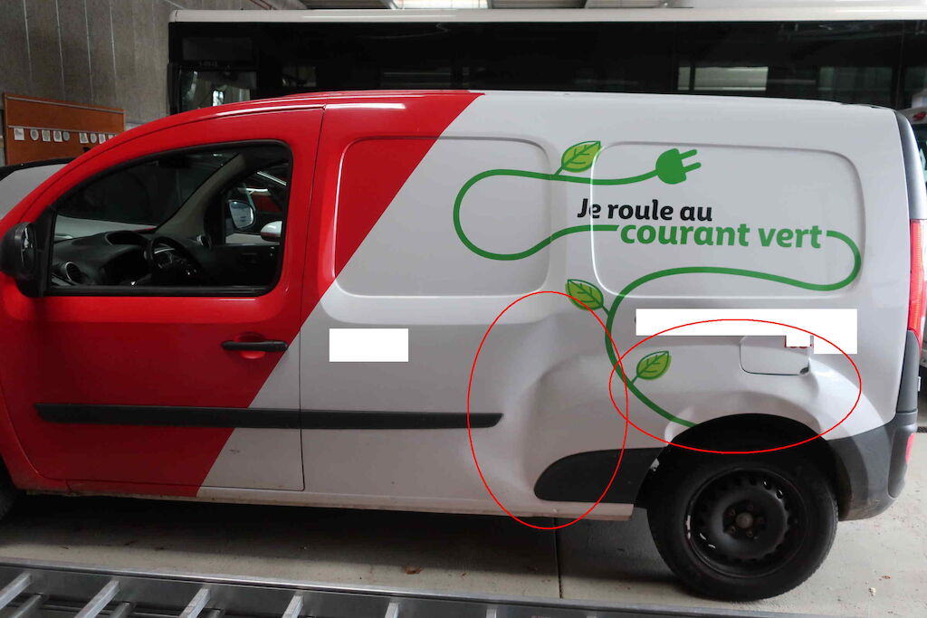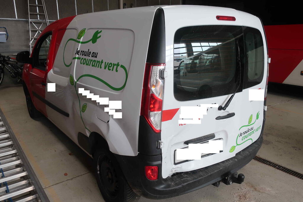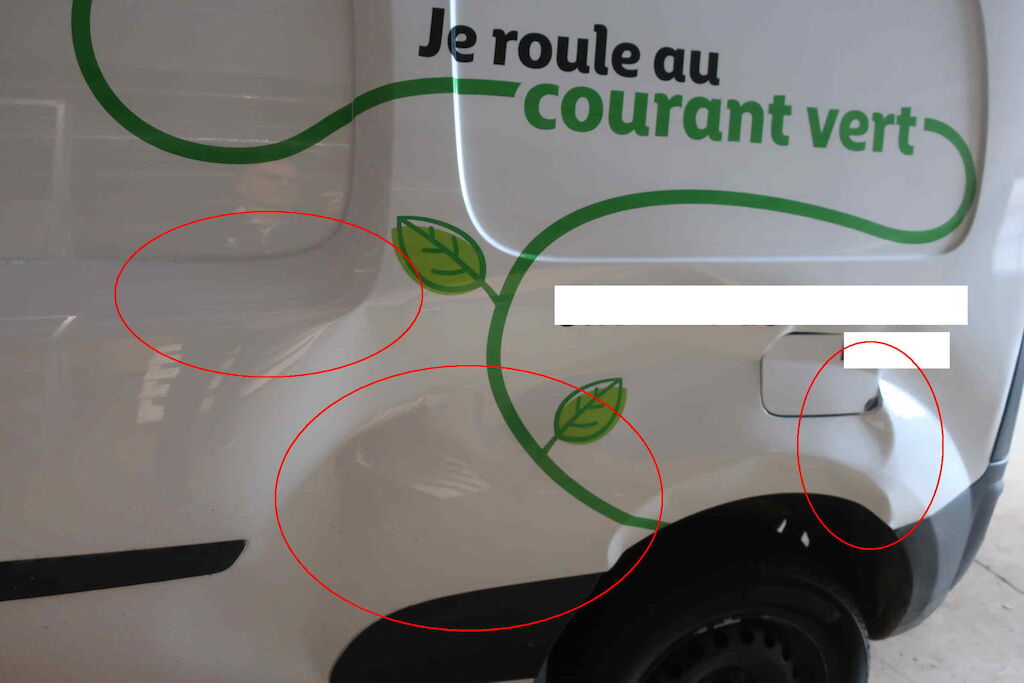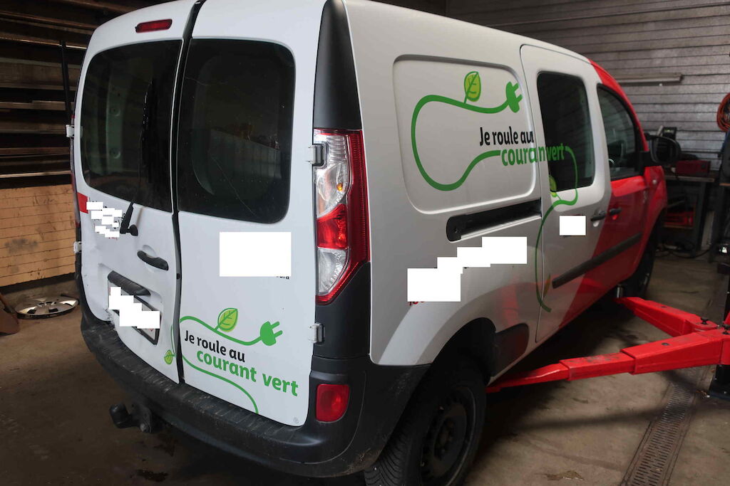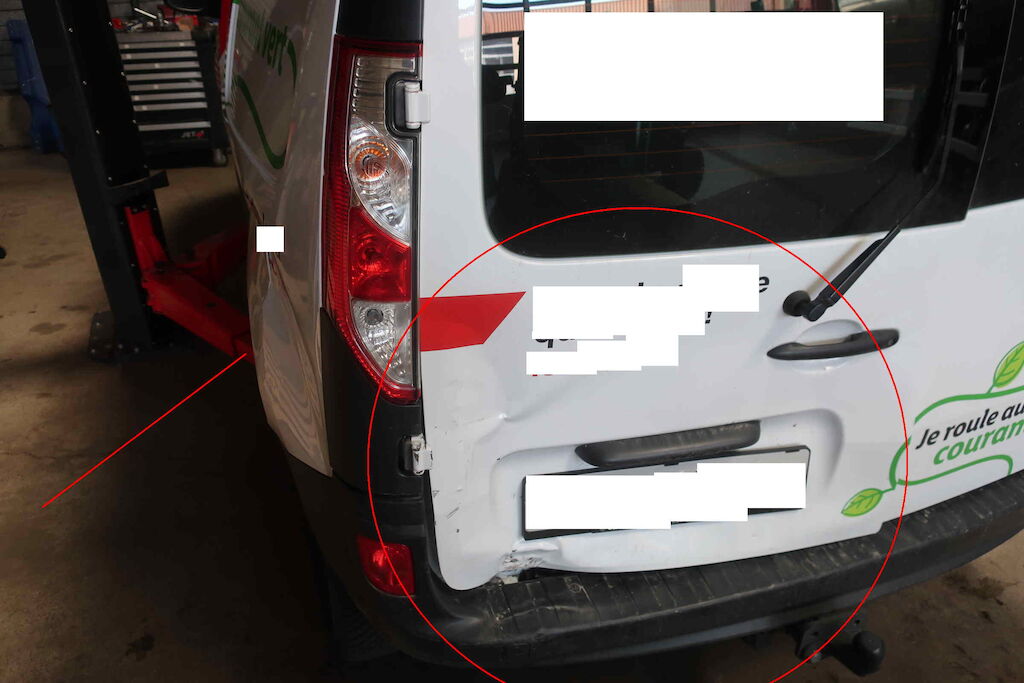 Porte battante gauche, pare-chocs, panneau lat gauche montant C fond de coffre attelage remorque bout de longeron endommagés. Pas de dommage visible à la batterie