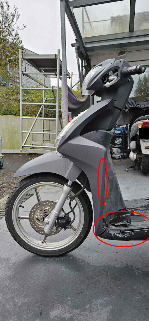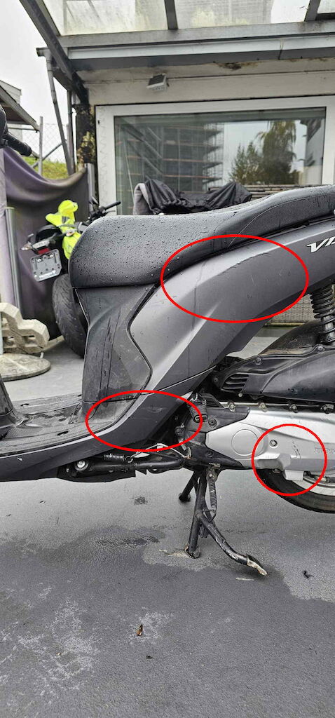Wieder aufgefundenes Diebstahlfahrzeug. Anzahl Schlüssel: 2 / Fz-Ausweis: ja / Bordmappe+Serviceheft: nein / Km-Stand: original / VIN: original / Lenkschloss: defekt / Zündschloss: i.O. / Reifen: Vo: 80/90-16 M/C (50%), Hi: 90/90-14 M/C (50%). Schäden: Lenkschloss defekt, Diverse Kratzer (Siehe Fotos), Verkleidung Tritt links, Abschirmung Auspuff, Frontverkleidung fehlt, Bremshebel verbogen, Rückspiegel fehlen, Sitzverriegelung, startet nicht. Probefahrt: nicht möglich. Die hier gemachten Angaben sind unverbindliche Beschreibungen. Sie stellen keine zugesicherten Eigenschaften dar. Der Verkäufer haftet nicht für Irrtümer, Eingabefehler und Datenübermittlungsfehler.