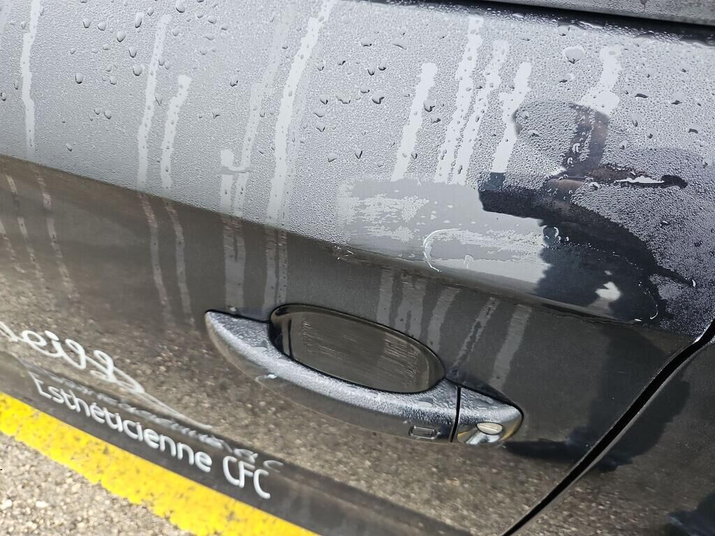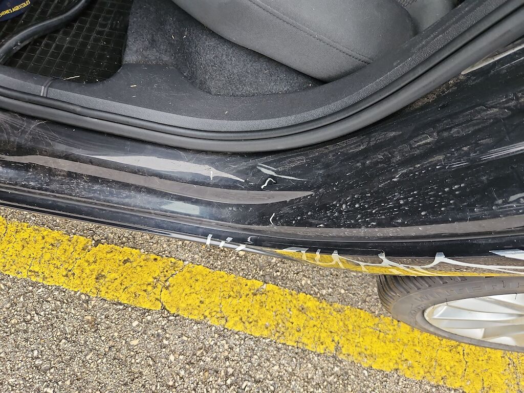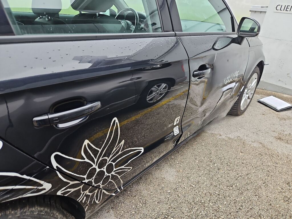 Collision, choc contre le côté droit, dommages à l’aile avant, porte avant, porte arrière, aile arrière ainsi que divers composants.