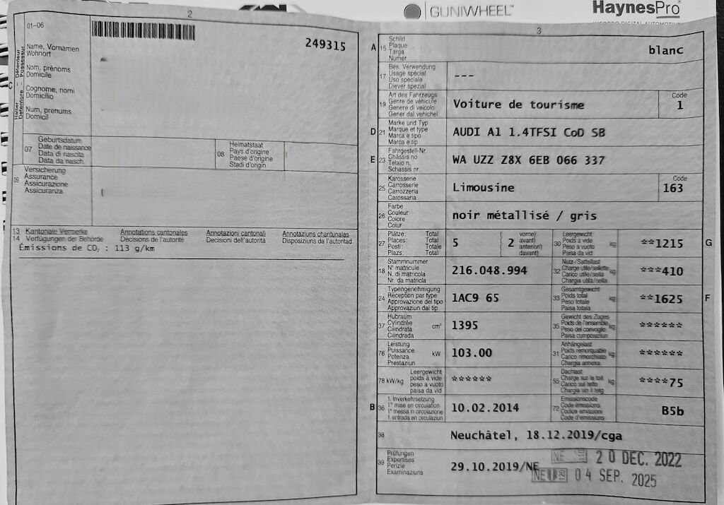 | Numero telaio | WAUZZZ8X6EB066337 |