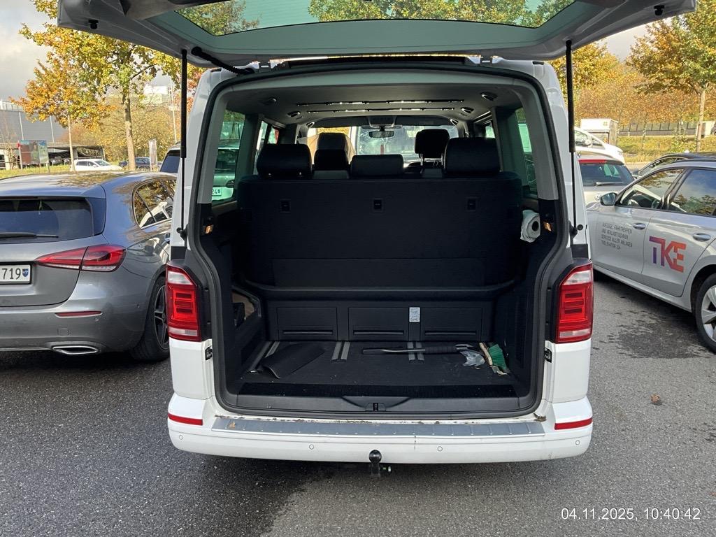 Sequentielles 7-Gang-Getriebe DSG mit Automatikfunktion, Stopp-/Start-System, Antriebsschlupfregelung (ASR), Seitenairbag für Fahrer und Beifahrer, Tagfahrlicht, Klimaanlage mit Ausströmer vorne, Elektronisches Stabilitäts-Programm ESP, Drehzahlmesser, Make up-Spiegel links, Ablagen in den Türen, Leder-Multifunktionslenkrad mit Radio- und Telefonbedienung, Antiblockiersystem (ABS), Bremsassistent (BAS), ISOFIX Kindersitzvorrichtung, Sitze: 3er Sitzbank in 3. Sitzreihe, Vordersitze höhenverstellbar mit Lenden- wirbelstützen und Armlehnen, Befestigungsösen im Laderaum, Leichtmetallräder (Devonport) 7x17J, Aussentemperaturanzeige, Schiebetüre rechts mit Fenster, Partikelfilter und Oxydationskatalysator, Make up-Spiegel rechts, Schiebefenster im Fahrgastraum vorne rechts, Licht: Nebelschlussleuchte, Wärmeschutzverglasung, Schienensystem im Laderaum, Airbag: Airbag Fahrer und Beifahrer, Teppichboden vorne und hinten, Digital Uhr, Schiebetüre links mit Fenster, Kombiinstrument und Multifunktions- anzeige (MFA) mit monochrom TFT-Display und Müdigkeitserkennung, Assist: Einparkhilfe vorne und hinten, Radiosystem Composition Colour, Licht: Drittes Bremslicht, Stossstangen, Aussenspiegel und Türgriff in Wagenfarbe, Elektronische Differentialsperre (EDS), Bremsenergie-Rückgewinnung, Mittelkonsole mit Ablagefach, Assist: Berganfahrassistent, Reifendruck-Kontrollanzeige, 2 Einzelsitze vorne, Fondbeleuchtung, Scheibenwischer vorne mit Intervall, Vordersitze beheizbar, Elektrische Fensterheber vorne, Sitze: Kreuzstützen für Vordersitze verstellbar, Wegfahrsperre elektronisch, Multifunktions-Mitteltisch, 3-Punkt-Sicherheitsgurte auf allen Plätzen, Heckscheibenheizung, Innenspiegel abblendbar, Heckklappe verglast, Lackierung: Uni-Lackierung, 12 Volt-Steckdose im Laderaum, Aussenspiegel rechts und links beheizbar und elektrisch verstellbar, Laderaumabdeckung, Tageskilometerzähler, Beleuchtetes und abschliessbares Handschuhfach, Reifenreparatur-Set mit Kompressor, Höhenverstellbare Gurten vorne, Radiovorbereitung, Antenne, Entstörung und 8 LS, Servolenkung, Leuchtweitenregulierung von innen, Tempomat, Steckdose 12V, Schiebefenster im Fahrgastraum vorne links, Airbag: Window-Kopfairbags, Heckscheiben-Wisch-/Waschanlage, Gurtstraffer vorne, Polster: Stoff-Ausstattung, Media: DAB+ (Digital Audio Broadcasting), Wegfall Multifunktions-Mitteltisch, Zentralverriegelung mit Fernbedienung, Sonnenschutzrollos für Seitenfenster im Fahrgastraum