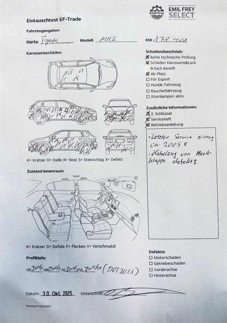 Keine technische Prüfung (Werkstatttest) vorgenommen