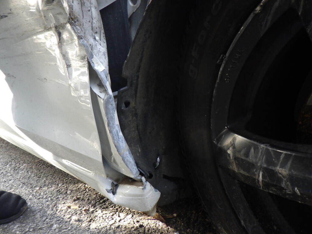 Fort choc avant droit: déformation du pare choc, renfort, joue d’aile avant droite, phares droit, calandre, grilles, torches électriques avant, longeron droit, montant avant droit, montant B, aile avant, les 2 portes droites, aile arrière droite, capot moteur, suspension avant, jante, pneu, transmission droite, airbags, les pré-tentionneurs avant, pare brise…