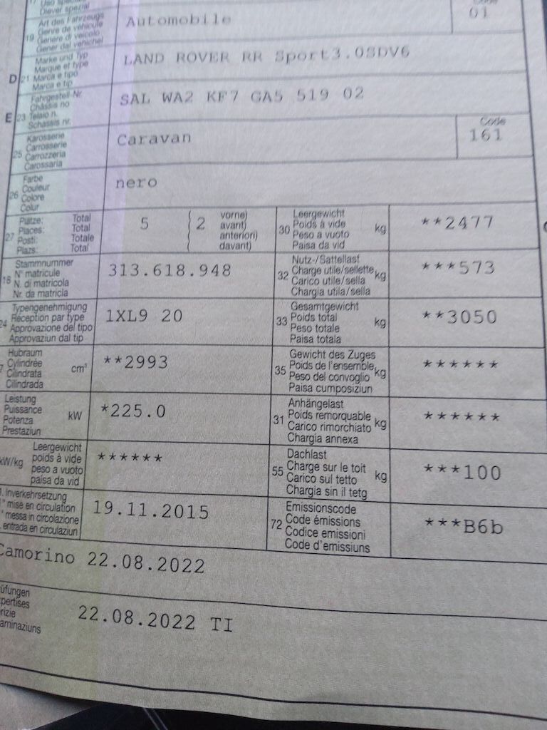 | Tipo veicolo / Costruzione / Porte | Automobile / Caravan / 5 |