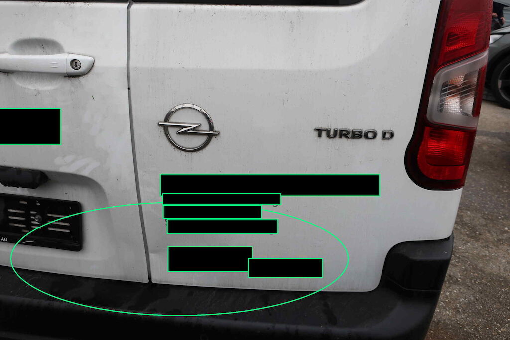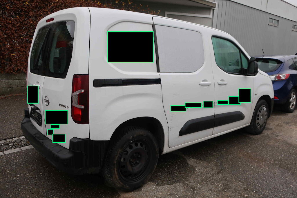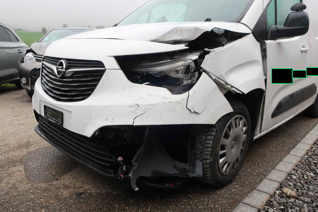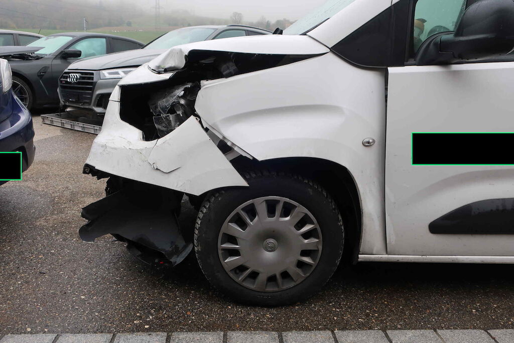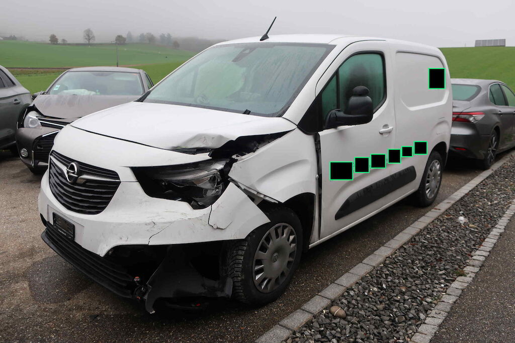 Stossfänger vo, Querträger, Kühlergrill, Motorhaube, Scheinwerfer li, Nebelscheinwerfer li, Schlossträger, Kotflügel vo li, Radhaus vo li, A-Säule li beschädigt