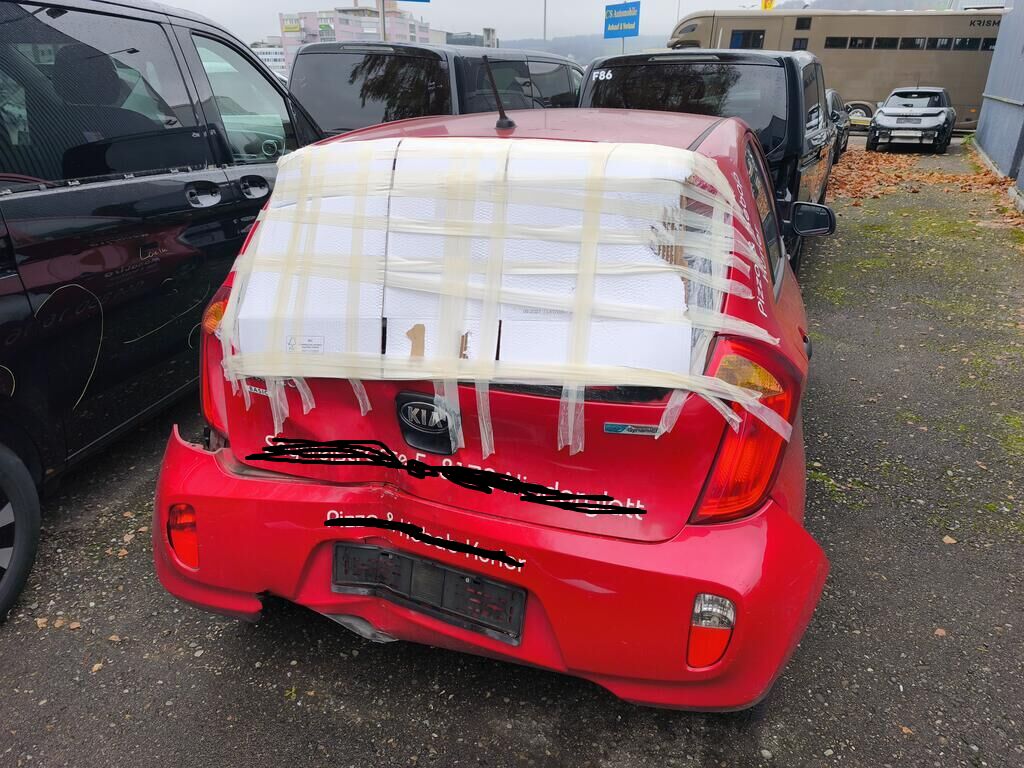 Beschädigt, deformiert und gestaucht sind die Stossstange hinten, der Aufprallträger hinten, das Heckabschlussblech und die Heckklappe inkl. Heckscheibe.