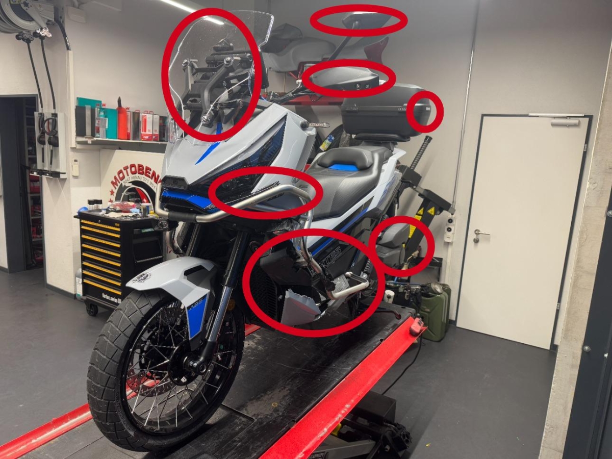 Zusätzliche Beschädigungen: Sturzbügel, Zusatzscheinwerfer, Variomatik-Abdeckung, Zentralständer, Auspuffabdeckung Scooter wir ohne Top Case verkauft Die (vom Fahrzeugexperten) ermittelten Reparaturkosten beziehen sich auf das versicherte Ereignis. Allfällige zusätzliche, nicht versicherte Schäden/Vorschäden, sind in den Reparaturkosten nicht enthalten. Die deklarierten Ausstattungsmerkmale können von der effektiven Ausstattung abweichen. Achtung Bei einem Hochvoltsystem – Spannungsfreiheit prüfen. Sicherheitshinweise und Betriebsanleitungen des Herstellers konsultieren und befolgen. |