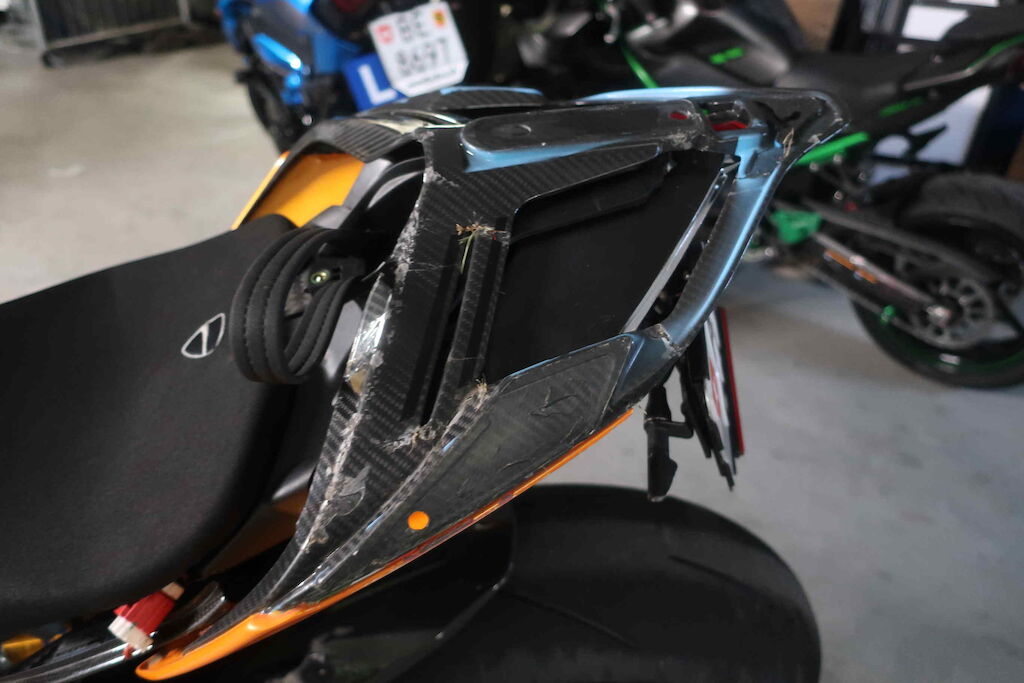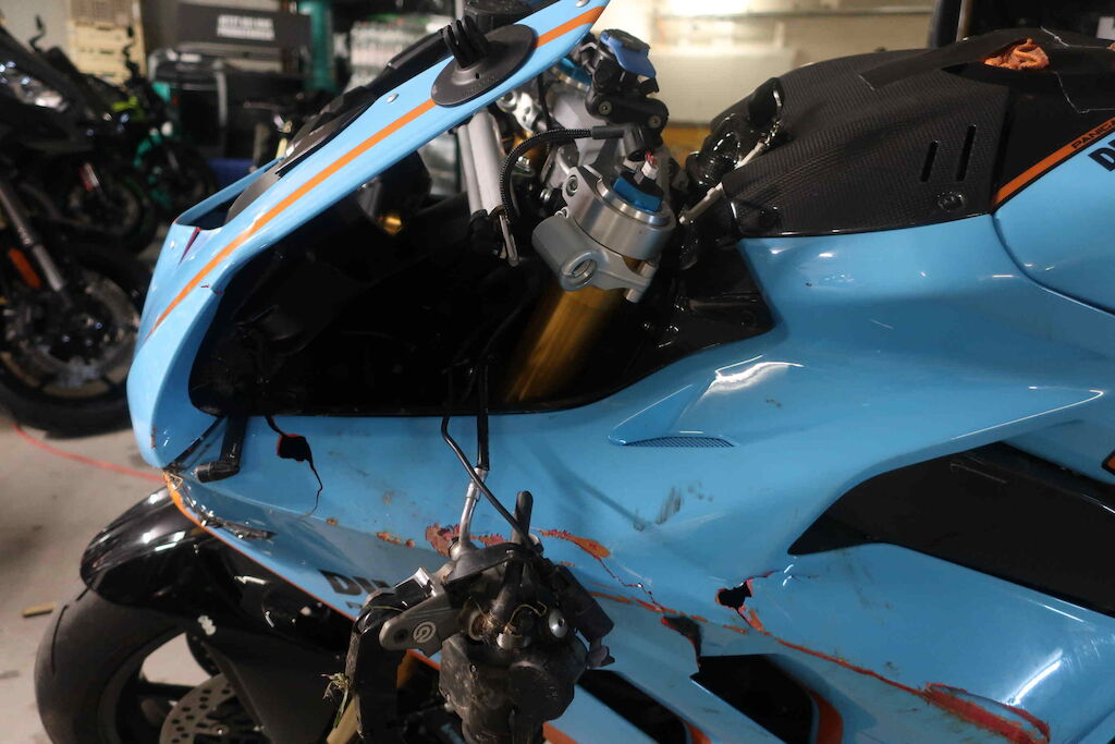 Gabel und Lenker vorne defekt, Alle Schalungen Kratzer Risse. Motordeckel Oelverlust, Cockpit usw gebrochen. Rahmen Risiko.