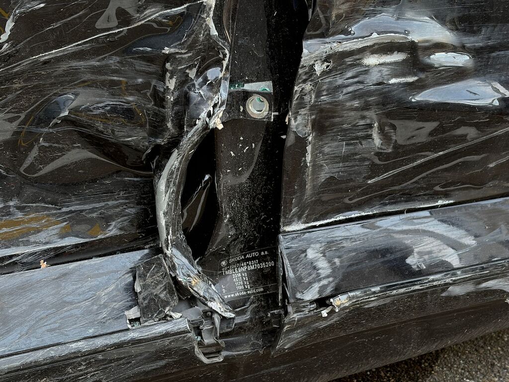 Kollisionsschaden Seite rechts und links, mit Beschädigung beider Seitenwände, der Türen, der B-Säule, der Radhäuser innen, der Hinterradaufhängung, der Seitenairbags, der Gurtstraffer, sowie diverser Anbauteile.