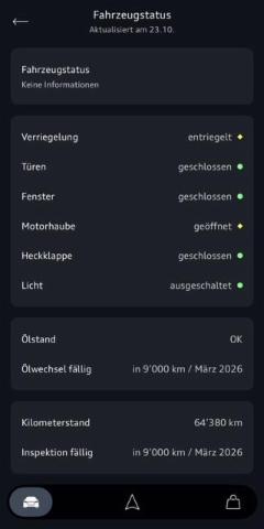 Serienaustattung Sitzheizung für Vordersitze Tempostat Airbag Fahrer und Beifahrerseite Seitenairbag Fahrer und Beifahrerseite Servotronic ESP/ ASR/ EDS/ ABS mit EBV Sportsitze vorne Seitliches Kopfairbagsystem SIDEGUARD Radschrauben mit Diebstahlsicherung Dachhimmel schwarz/ Stoff Make-up Spiegel beleuchtet Reifendruck-Kontrollsystem RDK Scheinwerfer Reinigungsanlage Wärmeschutzverglasung Automatisch abblendbarer Innenspiegel Adaptive air suspension Radioempfang digital DAB Klimaautomat Vier-Zonen Komfort-Mittelarmlehne vorne Park-System plus vorne + hinten Alcantara-Leder Dachreling Alu Isofix Kindersitzverankerung für Rückbank Pack Ablage Multifunktions-Ledersportlenkrad 3-Speich.(unten abgeflacht) Reifendruck-Kontrollanzeige Vordersitze elektrisch verstellbar/ Fahrersitz mit Memory Audi Sound System Audi Lane Assist (Spurverlassenswarnung) Isofix Kindersitzverankerung für Beifahrersitz Gepäckraumklappe elektrisch öffnend und schliessend Leichtmetallräder 21″ 10-Speichen Aussenspiegel in Aluminiumoptik matt MMI Navigation plus mit MMI touch Audi drive select (Fahrzeugcharakteristik) Audi pre sense basic Aussensp. el.verstellbar/heizbar/abblendbar/ ankl./Memory Details siehe gültige Preisliste des Importeurs Stop + Start System Rücksitzanlage dreisitzig Keine Gewähr auf die Angaben der Serienausstattungen Dekoreinlagen in Aluminium Race Audi Phone Box Audi pre sense front Diebstahlwarnanlage Kopfstützen vorne verstellbar Audi virtual cockpit Audi smartphone interface Audi connect Notruf & Service Interieurelemente in Kunstleder Audi connect Navigation & Infotainment Bedientasten Glasoptik inkl. erweiterter Aluminiumoptik HD Matrix LED-Scheinwerfer/ Laserlicht Ottopartikelfilter Lichtpaket Ambiente mehrfarbig Sonderausstattung |