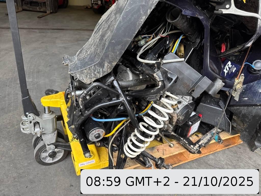 Antrieb, Armaturen, Auspuffkollektor, Auspufftopf, Aussenspiegel links, Aussenspiegel rechts, Diverse Anbauteile, Front, Fussraster links, Fussraster rechts, Gabelholm, Getriebe, Griff links, Griff rechts, Heck, Heckverkleidung, Kabelstrang, Kupplungsgehäuse, Kupplungsgehäuse, Kühler, Lenkanschlag, Lenker, Lenkschloss, Motor, Motorgehäuse, Rad hinten, Rad hinten links, Rad hinten rechts, Rad vorne, Rad vorne links, Rad vorne rechts, Rahmen, Rücklicht, Rücklicht links, Rücklicht rechts, Scheinwerfer, Schutzblech hinten, Schutzblech vorne, Schwinge, Seite links, Seite rechts, Sitz, Tank, Verschalungen hinten, Verschalungen links, Verschalungen rechts, Verschalungen vorne, Windschutzscheibe, Zündschloss