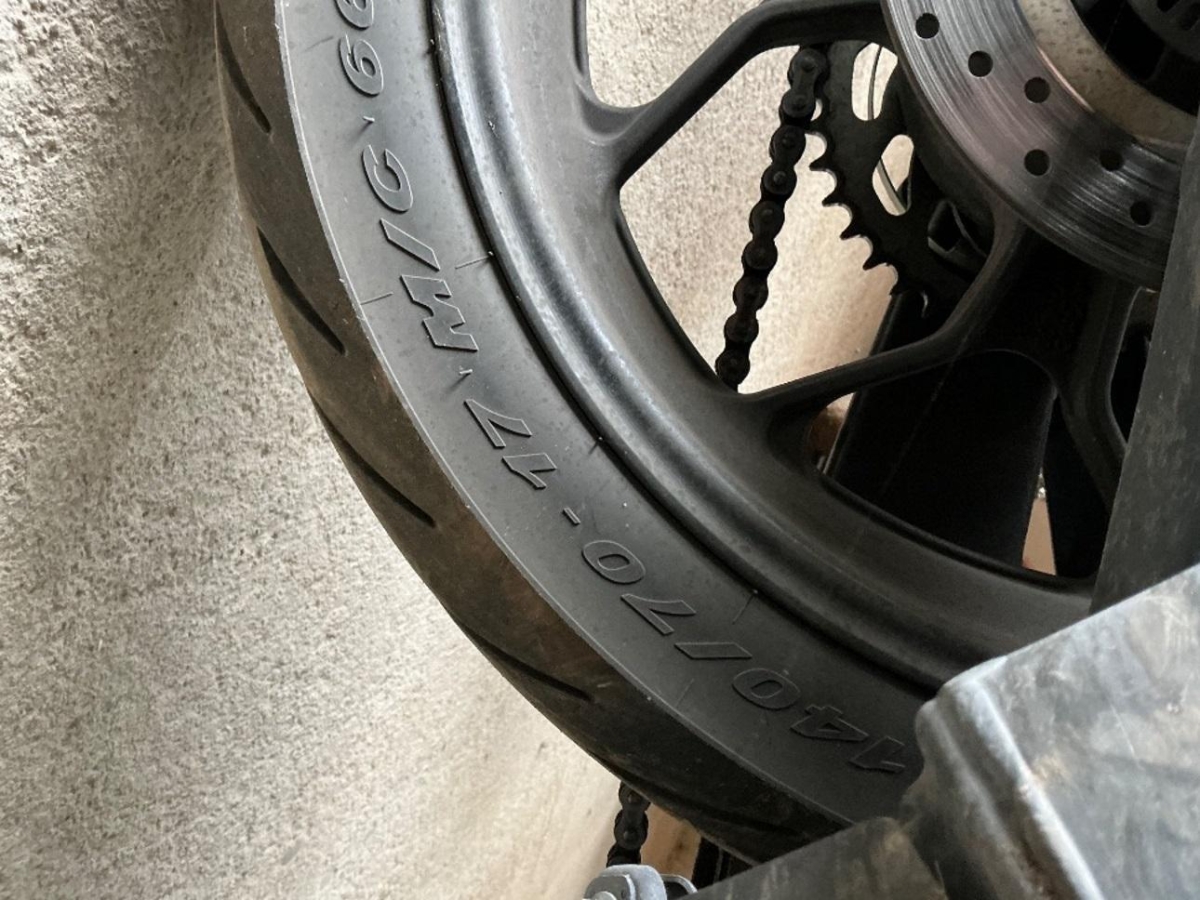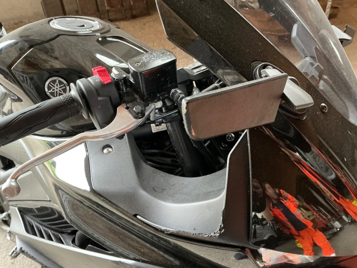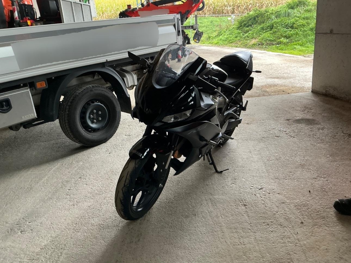 Auspufftopf, Aussenspiegel rechts, Fussraster rechts, Griff links, Kühler, Lenker, Motorgehäuse, Schutzblech vorne, Seite rechts, Sitz, Tank, Verschalungen hinten, Verschalungen rechts, Verschalungen vorne