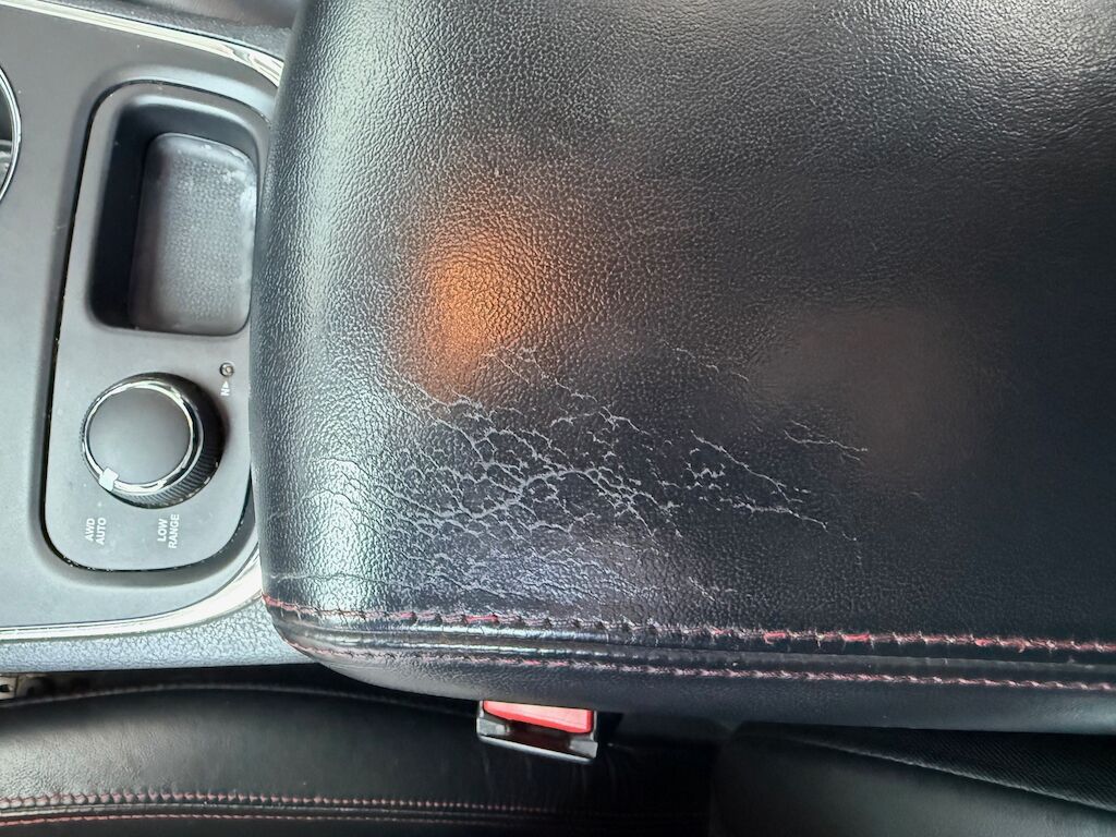 -rissiges Kunstleder an Mittelarmlehne
