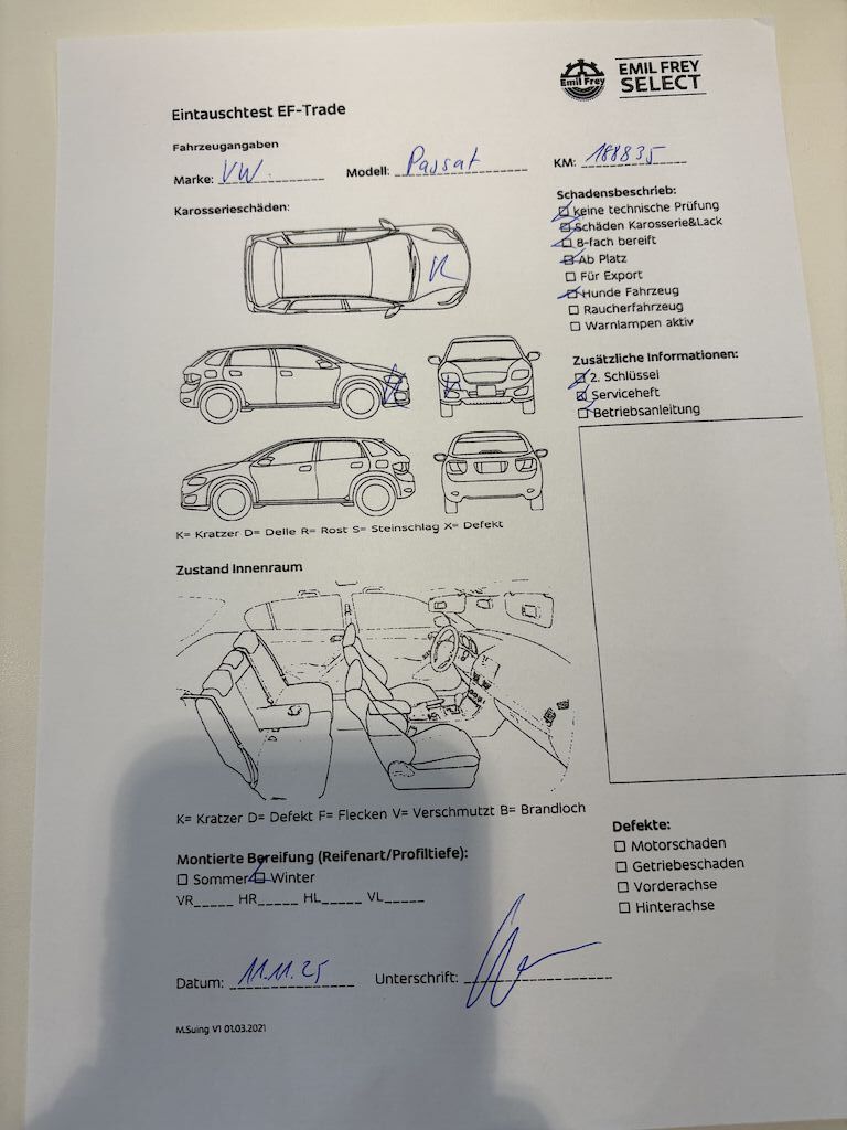 Keine technische Prüfung (Werkstatttest) vorgenommen