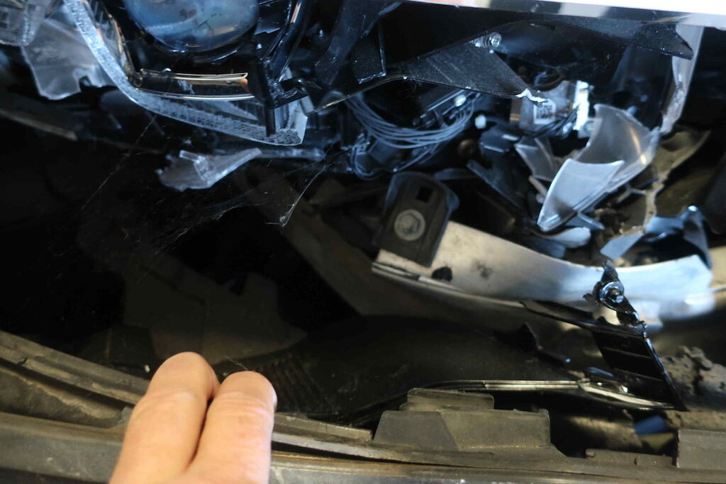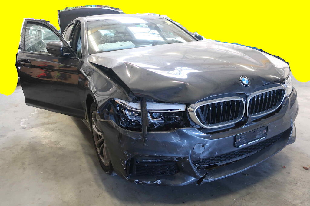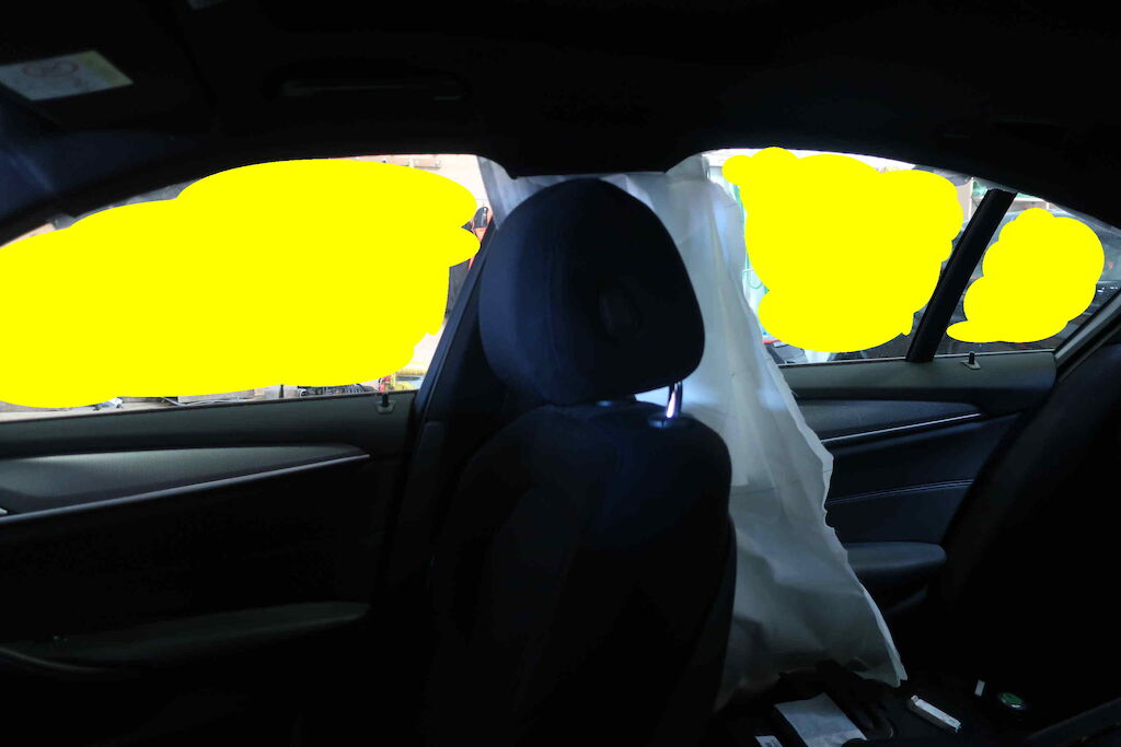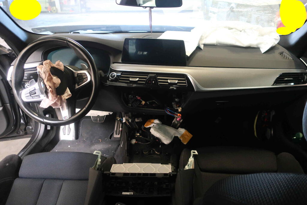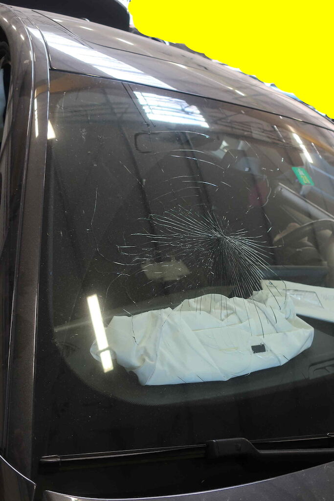 Frontscheibe, Airbag Fahrer- und Beifahrer ausgelöst, Kopfairbag links und rechts ausgelöst, Knieairbag und Gurtstraffer Fahrer ausgelöst