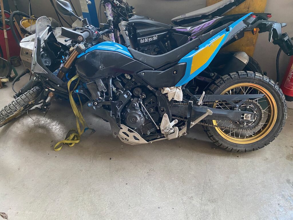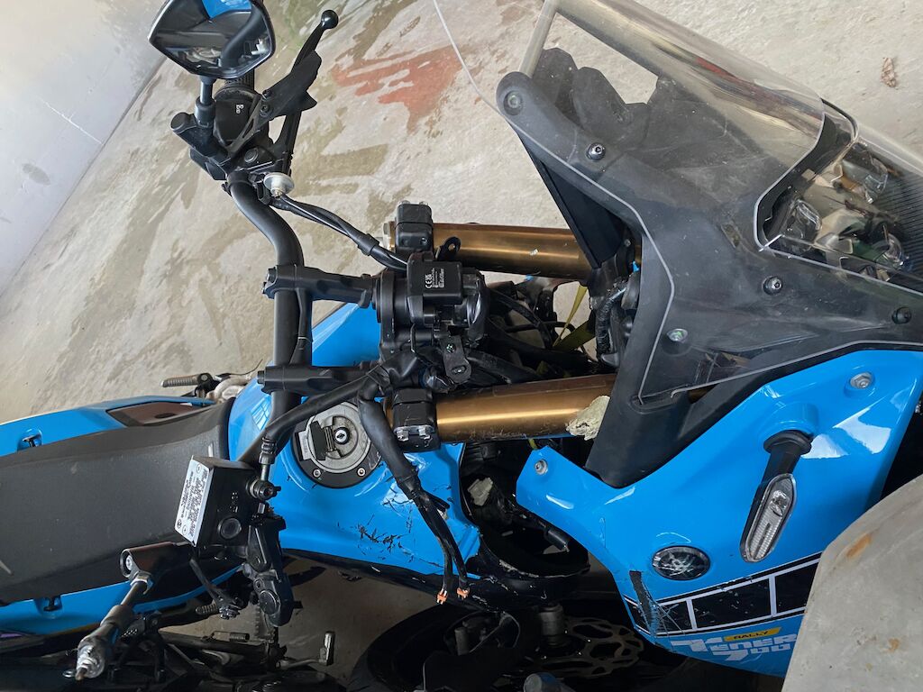 Beschreibung der Schäden: Rundum beschädigt, Gabel/Rahmen vorne abgerissen. Risiko auf alles, auch Motor! . Km-Stand ca. 900 – 1’000 km.
