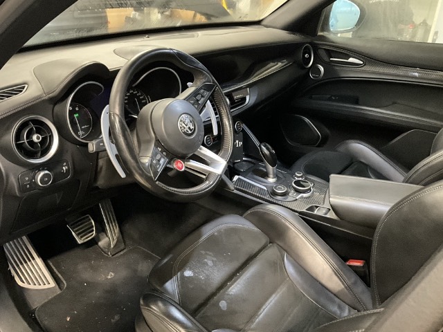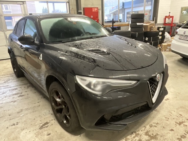 2-Zonen-Klimaautomatik, 3 Kopfstützen hinten, 3-Punkt-Sicherheitsgurte auf allen Plätzen, ABS, EBD elektronische Bremskraft- verteilung, AUX Anschluss in der Mittelarmlehne vorne, Airbag: Airbag Beifahrer deaktivierbar, Airbag: Airbag Fahrer und Beifahrer, Airbag: Seitenairbag für Fahrer und Beifahrer, Airbag: Window-Kopfairbags, Alfa Active Suspension Fahrwerk mit elektronischer Stossdämpferregelung, Allradantrieb permanent, Armaturenbrett und Türverkleidung in Leder, Assist: Parksensoren vorne und hinten, Assist: Spurhaltewarnung LDW (Lane Departure Warning), Auspuffanlage mit 4 Endrohren, Aussenspiegel automatisch abblendend, Aussenspiegel elektrisch einklappbar, Bi-Xenon Lichtanlage, Bremsassistent (BAS), Bremssättel grau eloxiert, Carbon Applikationen, Connected / Android Auto / Apple CarPlay, Dachhimmel beleuchtet, Dynamisches Kurvenlicht, Elektrische Fensterheber vorne + hinten, Elektrische Heckklappe, Elektromechanische Parkbremse, Elektronisches Stabilitäts-Programm (ESP) mit Antischlupfregelung (ASR) und Hill Holder, Fahfwerk:Torque Vectoring, Getriebe: 8-Stufen-Automat sequentiell, Getönte Scheiben, Gurtkontrolle, Heckscheibenheizung, ISOFIX Kindersitzvorrichtung, Innenraumbeleuchtung, Innenspiegel automatisch abblendbar, Integrated Brake System, Katalysator geregelt, Keyless Entry / -Start, LED-Tagfahrlicht, Lenkrad-Wippschaltung (Paddles), Lenkradfernbedienung, Licht- und Regensensor, Licht: Drittes Bremslicht, Licht: Nebelschlussleuchte, Make up-Spiegel beleuchtet für Beifahrer, Media: Alfa Connect 8,8”-Navigationssystem mit 3D-Kartendarstellung, 8 Lautsprechern und Rotary Pad (inkl.DAB MP3, Aux-In, Bluetooth), Multifunktionales Instrumentendisplay, Notbremsassistent, Pedalerie mit Aluminiumauflage, Pollenfilter (Staubfilter), Reifendruckkontrollsystem, Reifenreparatur-Set, Räder: 4 Leichtmetallfelgen 20J mit Pneu, Rückfahrkamera, Rücksitzlehne geteilt abklappbar, Seitenfenster-Zierleisten schwarz, Servolenkung, Sport-Lederlenkrad mit rotem Starknopf, Sportauspuffanlage, Sportsitze in Leder/Alcantara, Start/Stop-Funktion, Tempomat, Teppichfussmatten, Toter-Winkel-Warnsystem, Türgriffe aussen beleuchtet für Einstiegsbereich, USB Anschluss in der Mittelarmlehne vorne, Unterbodenpannele, Wegfahrsperre elektronisch, Zentralverriegelung mit Fernbedienung
