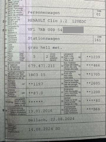 Serienaustattung Airbag Fahrer und Beifahrerseite Sitzheizung vorne Aussenspiegel elektrisch verstellbar und heizbar Nebelscheinwerfer Lederlenkrad Lenkrad verstellbar Elektrische Fensterheber hinten ABS und EBV Elektr. Bremskraftverteilung Deaktivierung Beifahrerairbag Aussenspiegel elektrisch anklappbar Isofix-Kindersitzbefestigung Leichtmetallfelgen 17″ Not-Bremsassistent mit Aktivierung der Warnblinkanlage Seitenairbags vorne ESP/ ASR/ CSV Tempomat mit Geschwindigkeitsbegrenzer Dunkle Verglasung hinten Elektrische variable Servolenkung Höhenverstellbarer Fahrersitz HSA Berganfahrassistent Rücksitzlehne geteilt 1/3 oder 2/3 / umklappbar Sitzbezüge in Leder Klimaanlage automatisch inkl. Pollenfilter Pack Style Einparkhilfe hinten Stop + Start System LED Tagfahrlicht Keine Gewähr auf die Angaben der Serienausstattungen Aussenspiegel lackiert Pack Relax R-Link Pack Easy Pack Visibilite Sonderausstattung |
