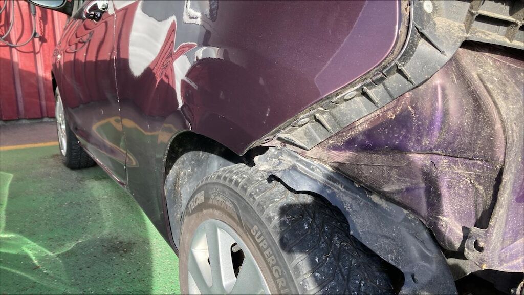 Zone arrière: coffre, renfort, jupe, par choc, phare, aile arrière gauche, enfoncés, refoulés.