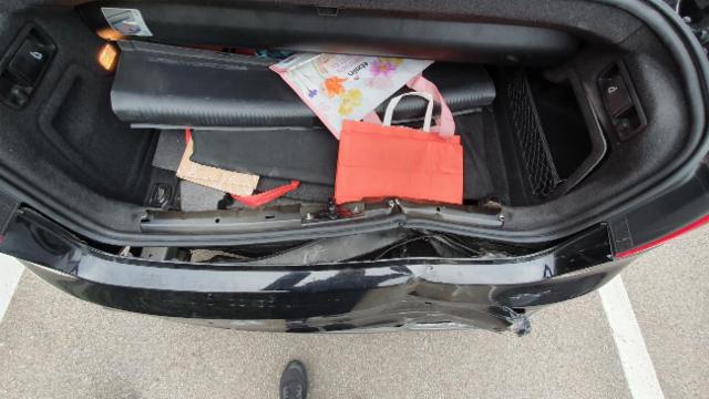 Beschädigungen Heck Heck eingedrückt. Seitenwand hinten rechts und links eingedrückt. Heckblech eingedrückt. Kofferboden eingedrückt. Heckklappe eingedrückt. Längsträger hinten rechts gestaucht / abgeknickt. Abgasanlage deformiert. Elektrik Sonstige Schäden Weitere Beschädigungen |