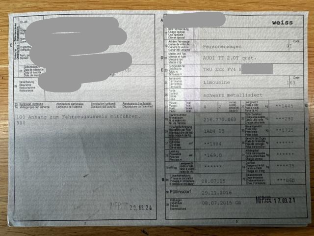 Serienaustattung Mittelarmlehne vorne Aussenspiegel elektrisch verstellbar/ heizbar und anklappbar Airbag Fahrer und Beifahrerseite Seitenairbag Fahrer und Beifahrerseite ESP/ ASR/ EDS/ ABS mit EBV Sportsitze vorne Innenspiegel automatisch abblendbar/ Licht- und Regensensor Aussenspiegel in Wagenfarbe Xenon-Plus Scheinwerfer Radioempfang digital DAB Tirefit Leichtmetallräder 17″ 5-Arm Design Reifendruck-Kontrollanzeige MMI Radio Audi drive select (Fahrzeugcharakteristik) Stop + Start System Audi Active Lane Assist Keine Gewähr auf die Angaben der Serienausstattungen Komfort Klimaautomatik Sonderausstattung |