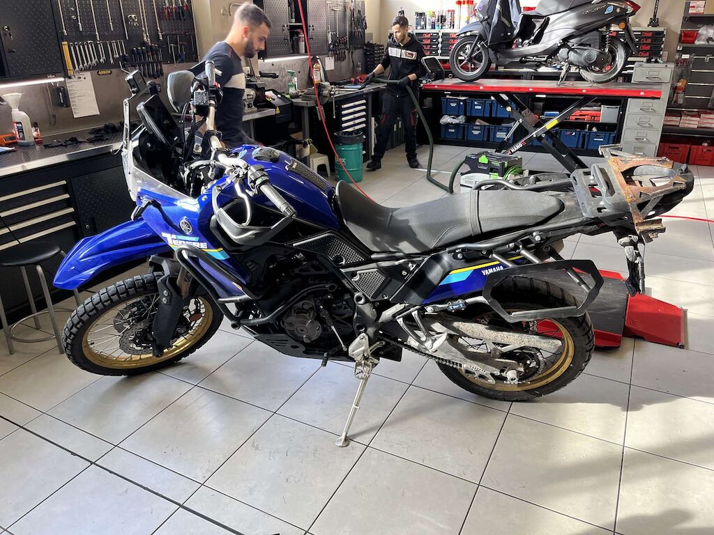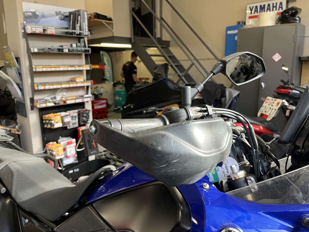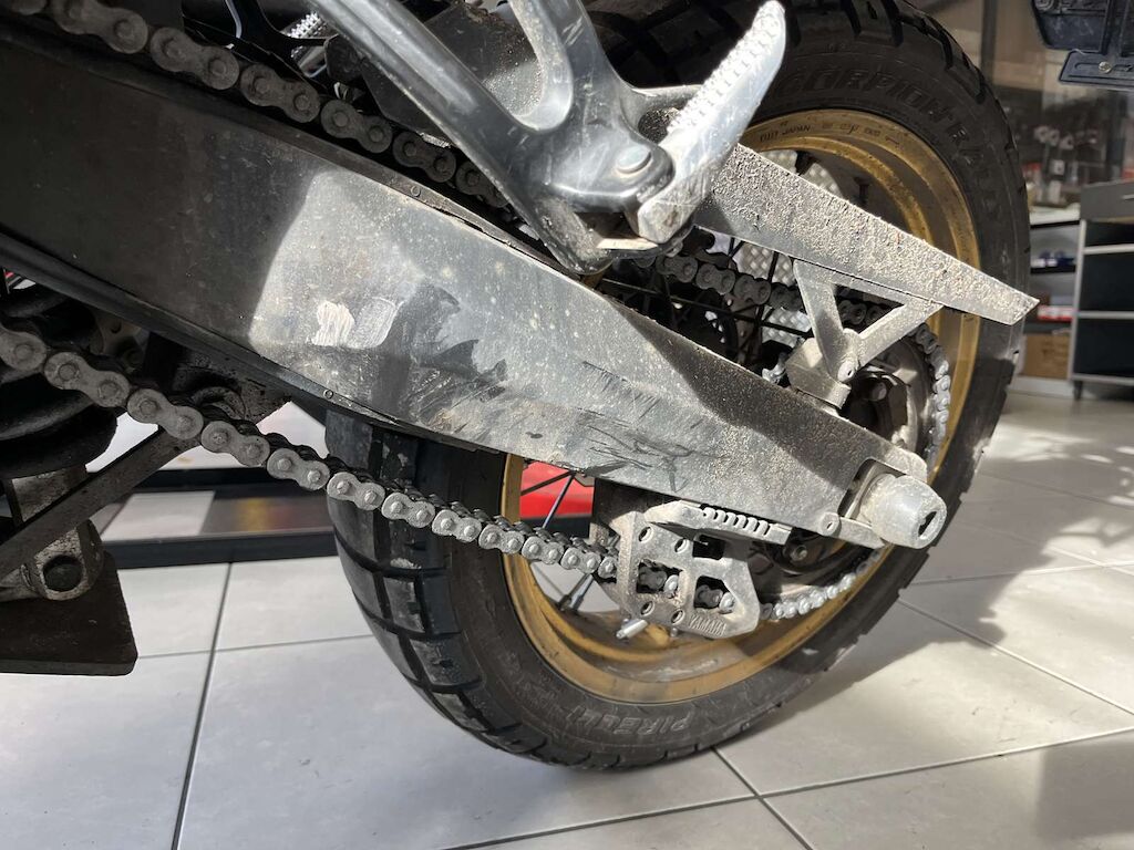 Echappement, reposes pied, protèges main, barre de protection bras oscillant endommagés.