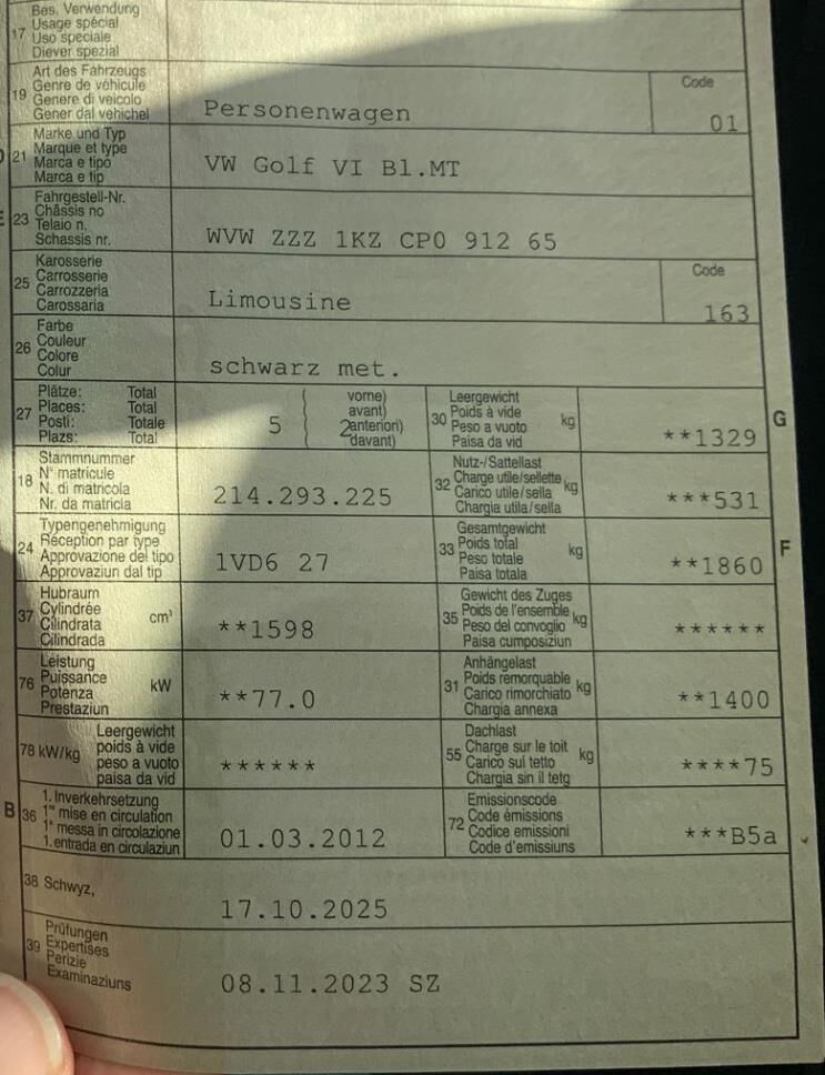 | Numero telaio | WVWZZZ1KZCP091265 |