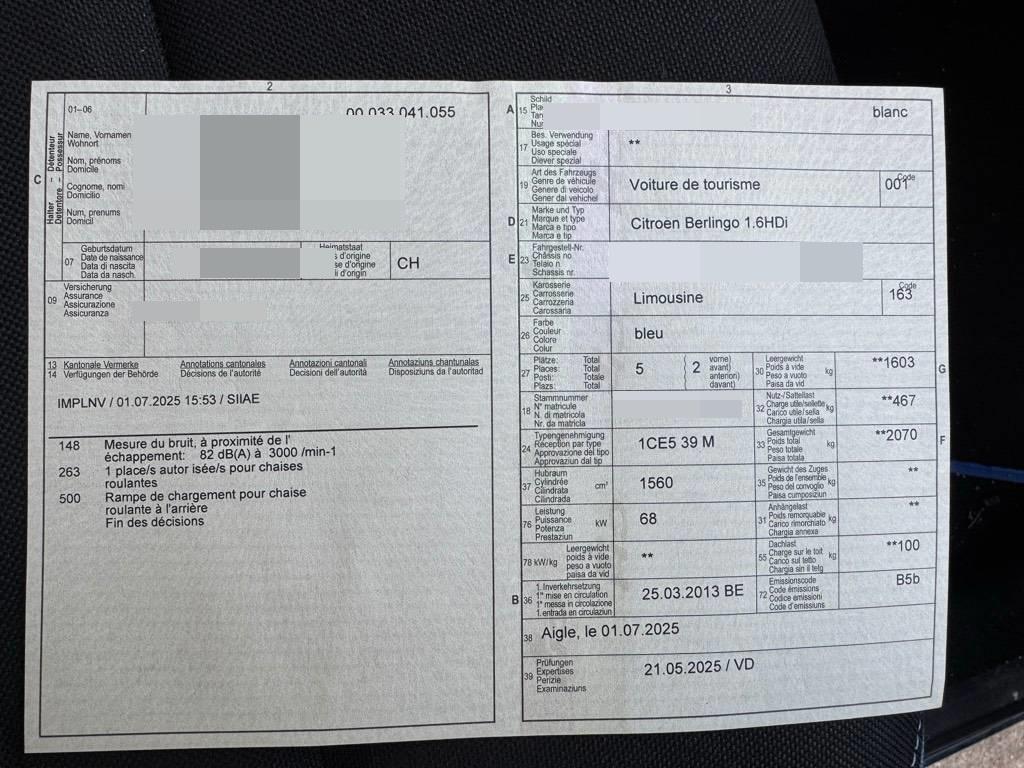| Fahrzeugausweis | Vorhanden |