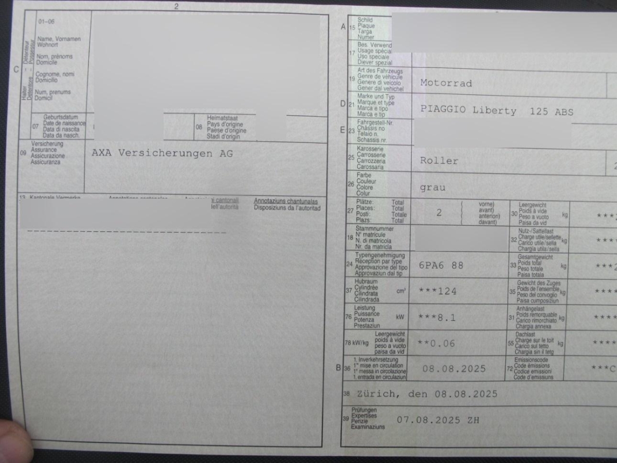 Fahrzeugausweis Vorhanden