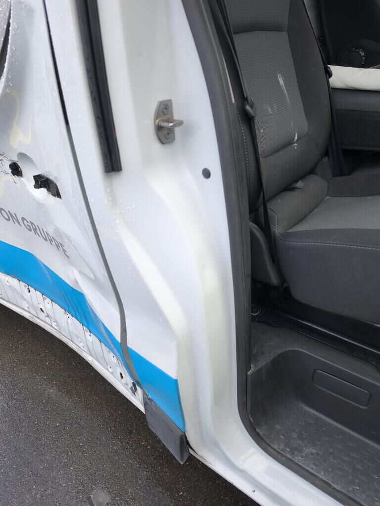 Die Hinterachse ist auf der linken Seite angestanden und ist um ca. 10 cm nach rechts verschoben worden. Die Hinterachse inkl. Aufnahmen sind beschädigt!