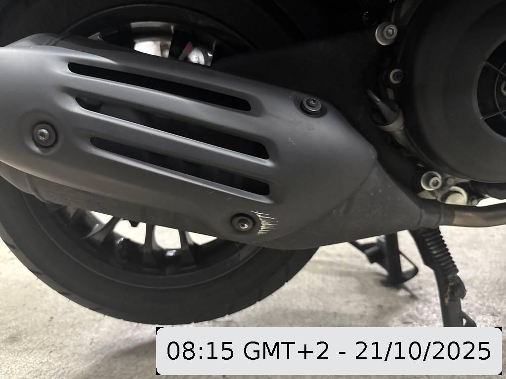 Auspufftopf, Aussenspiegel rechts, Diverse Anbauteile, Fussraster rechts, Griff rechts, Lenker, Rahmen, Seite rechts, Verschalungen rechts, Verschalungen vorne