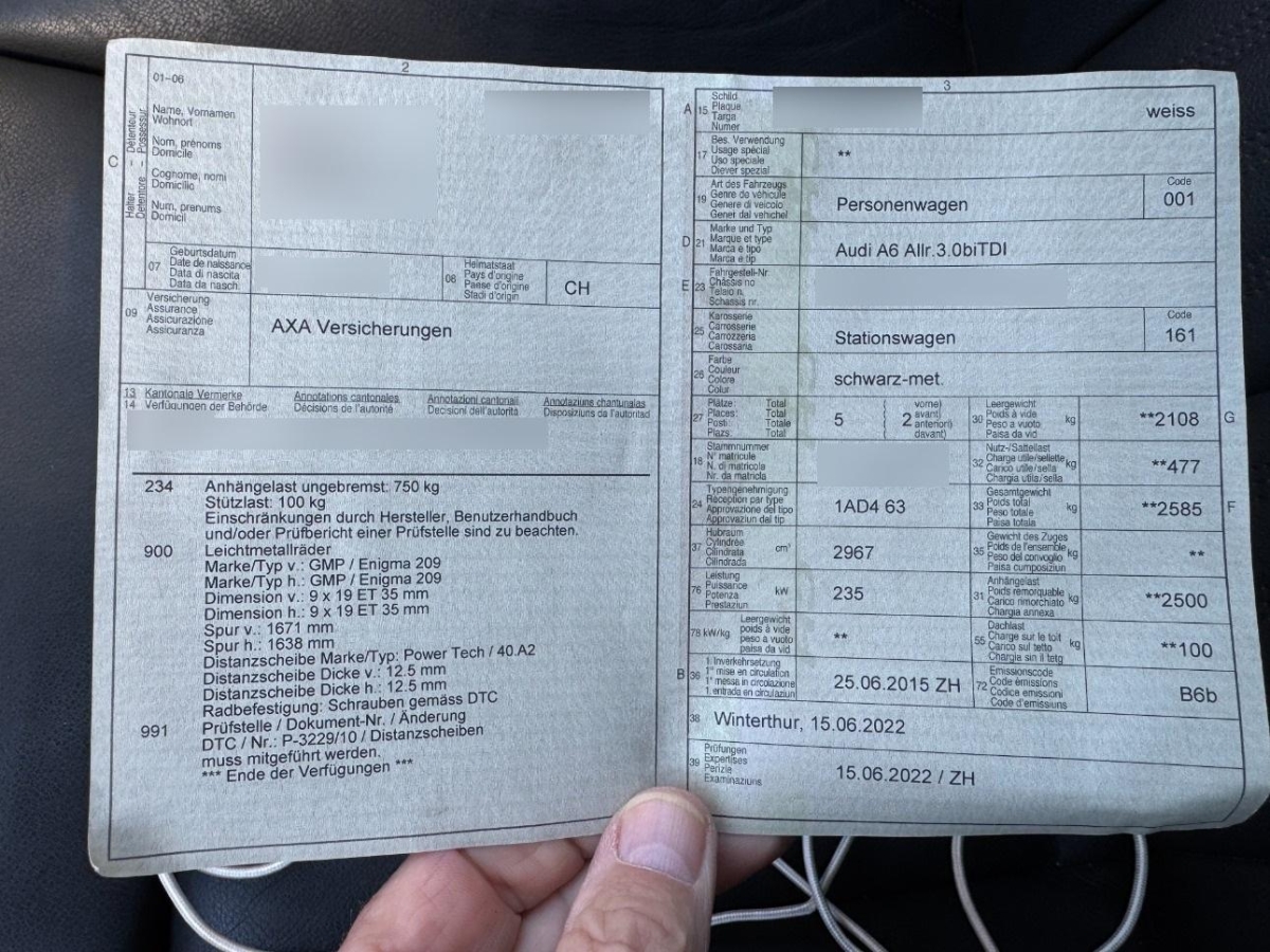 Fahrzeugausweis Vorhanden