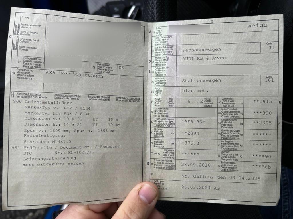 | Fahrzeugausweis | Vorhanden |