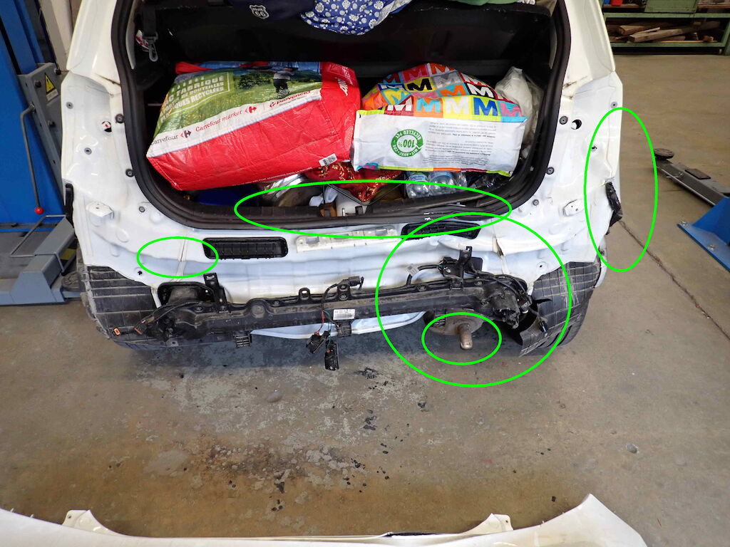 Parechoc, hayon, jupe, traverse, feu, aile ard. plancher