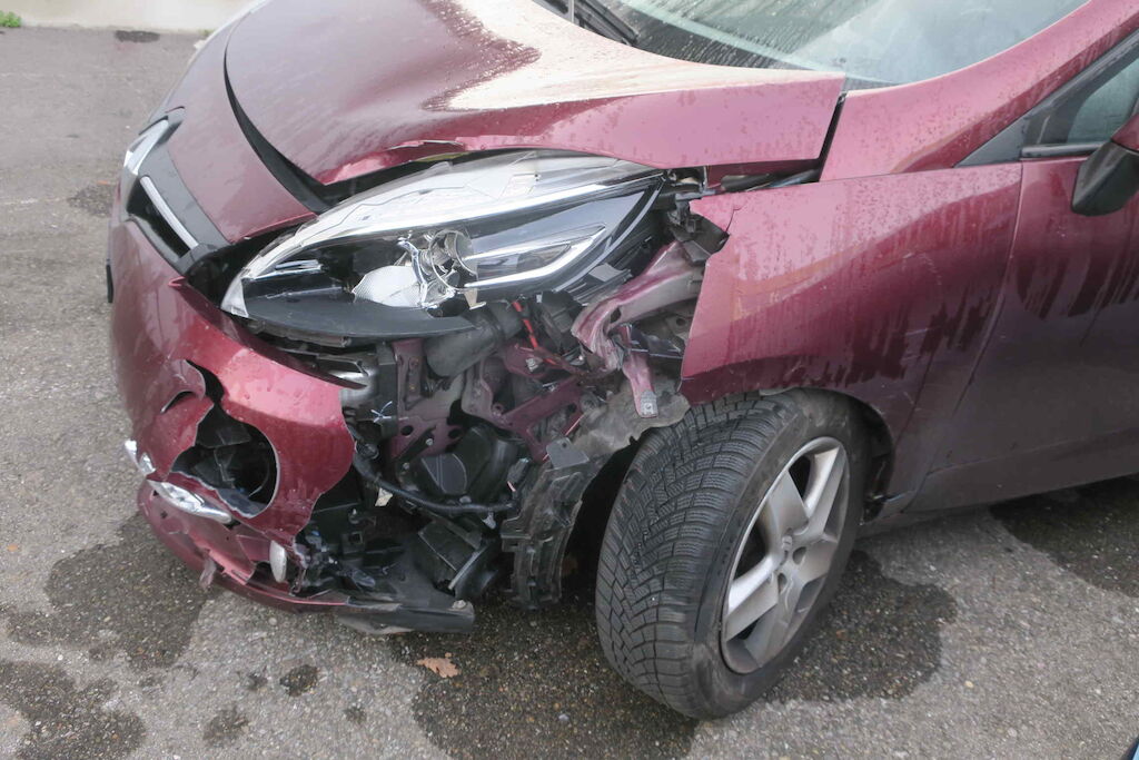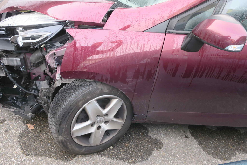 Massiver Frontschaden links, Rad, Radaufhängung vo. links ist deformiert.