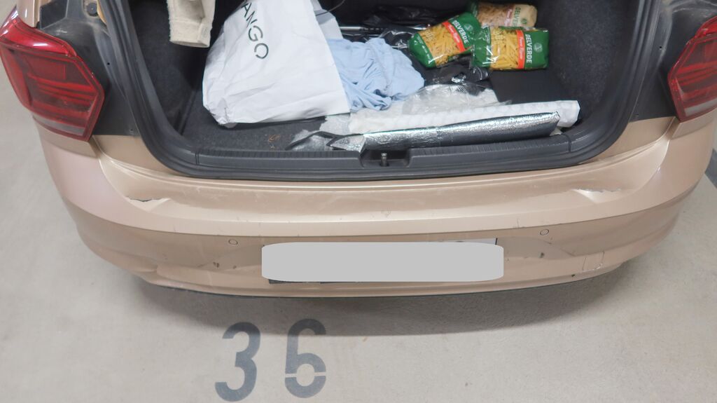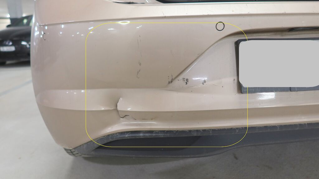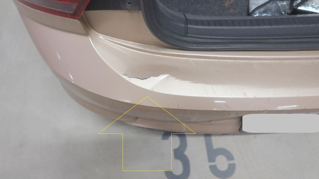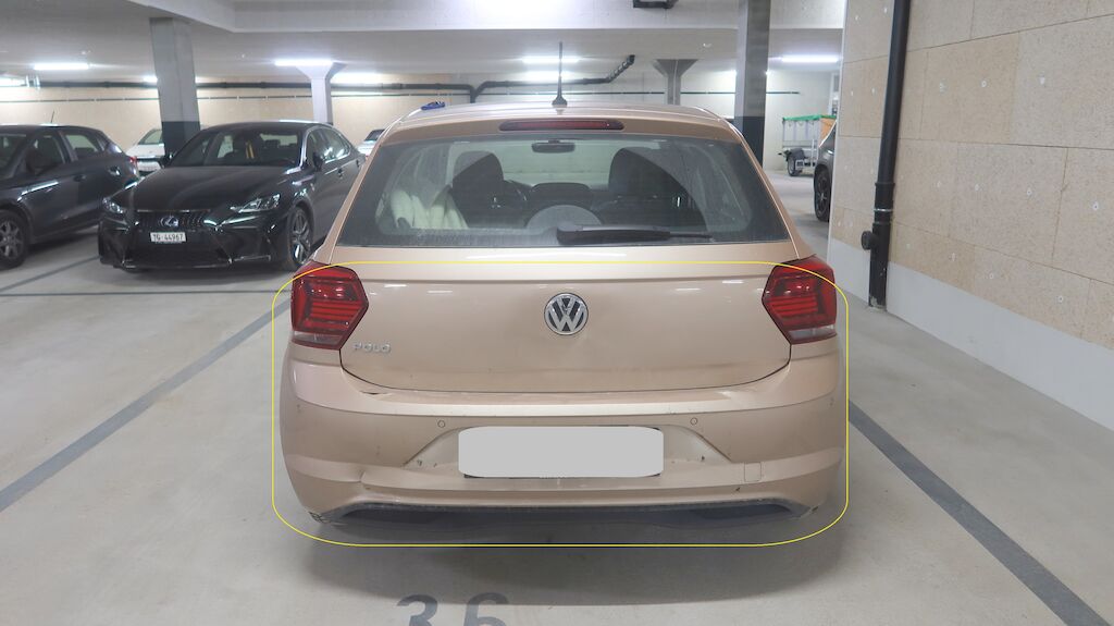 Stossstangenabdeckung hinten gerissen, Querträger verformt, Kabelstrang beschädigt, Heckblech eingedellt, Heckklappe eingedellt und verformt, Sicherheitsgurt hinten links und rechts blockiert, Sicherheitsgurt vorne rechts blockiert, Abdeckungen hinten rechts und links gerissen.