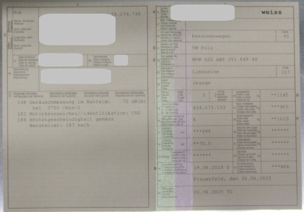 | Das Fahrzeug wird durch die Fahrzeughalterin noch betrieben. | |