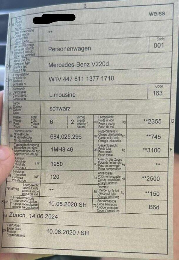| Tipo | V-Klasse V447 Van V 220 d kurz |