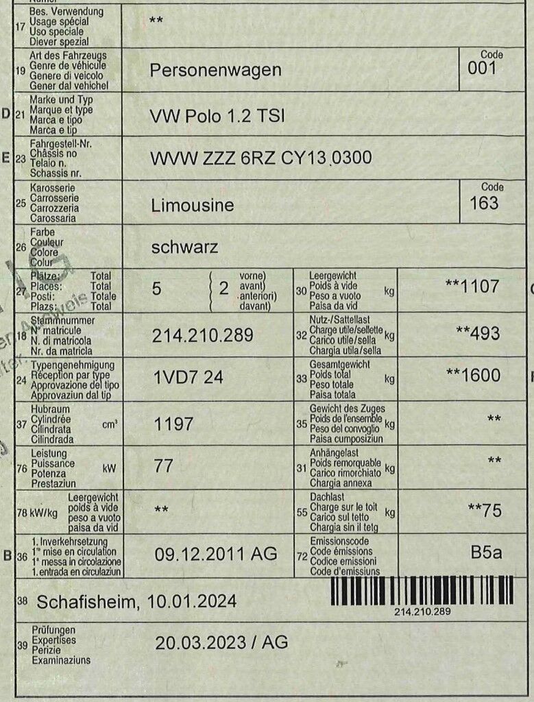 | Numero telaio | WVWZZZ6RZCY130300 |