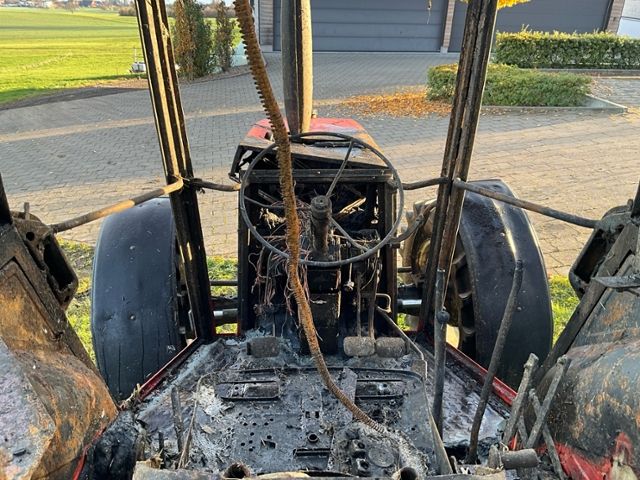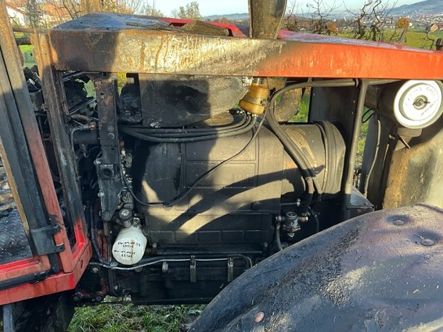 Zustand Fahrzeug muss transportiert werden (Höhe und Breite beachten). Fahrzeug ist NICHT fahrbar. Fahrzeug ist rollbar. Fahrzeug ist teilweise ausgebrannt. Fahrzeug weist äusserlich Brandspuren auf. Fahrzeug weist im Innenraum Brandspuren auf. Motor startet nicht, Ursache unbekannt. Sonstiges Schlüssel Traktor |