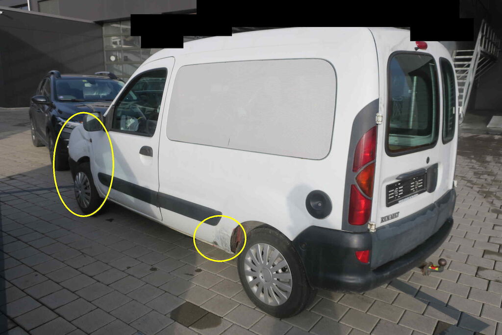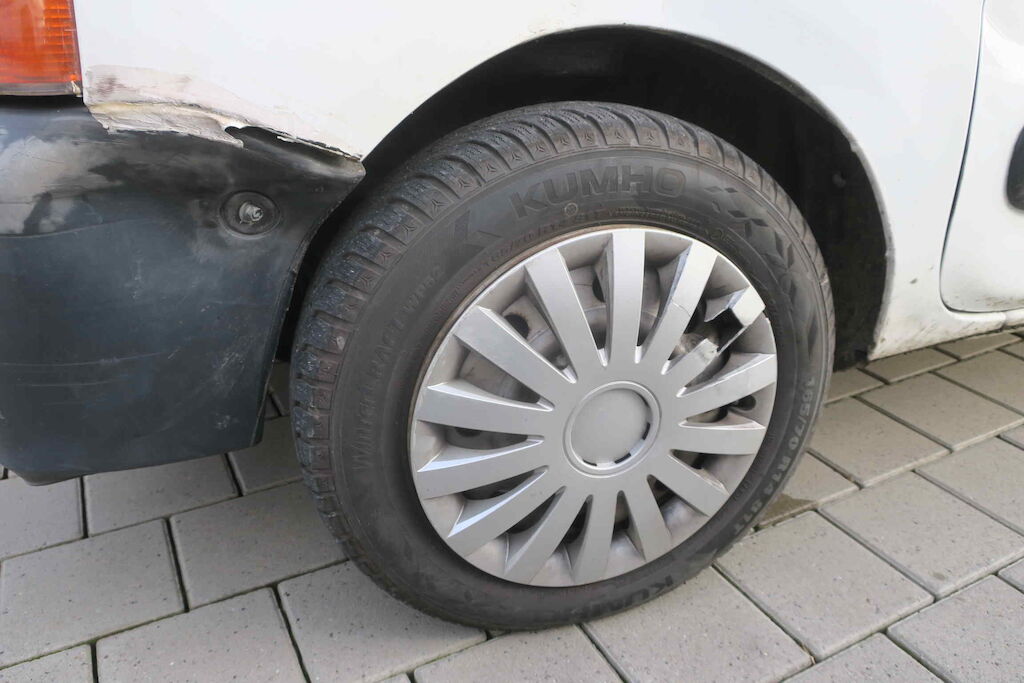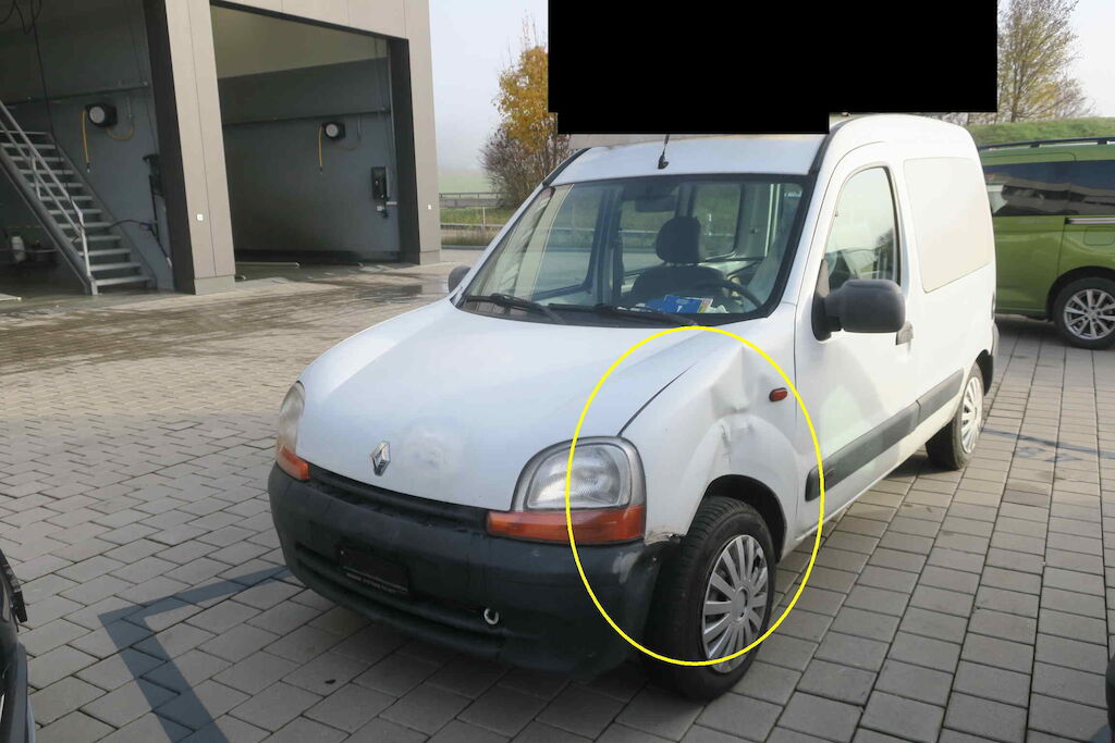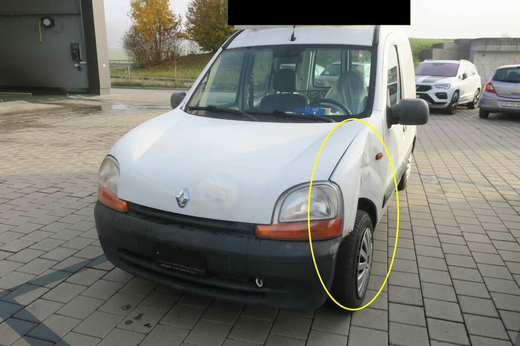 Seite vo. links: Kotflügel, Stossfänger inkl. Rad, Radaufhängung.