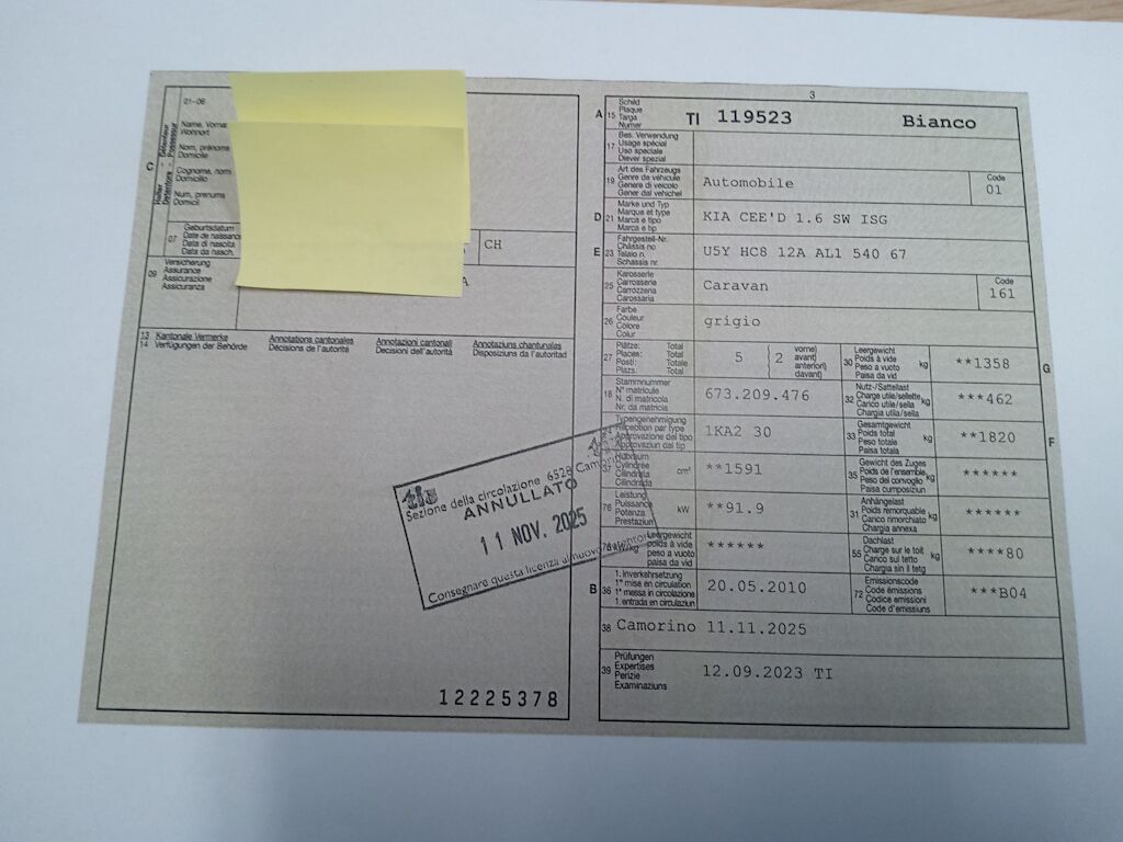 Non è stata effettuata alcuna ispezione tecnica (prova in officina)
