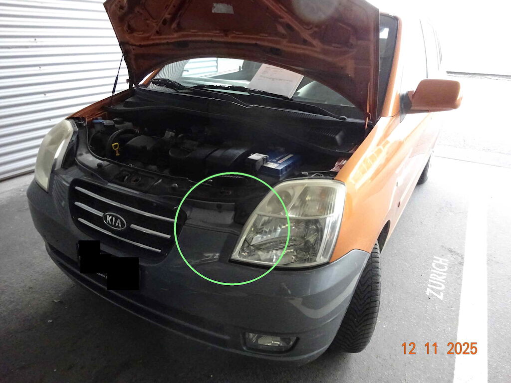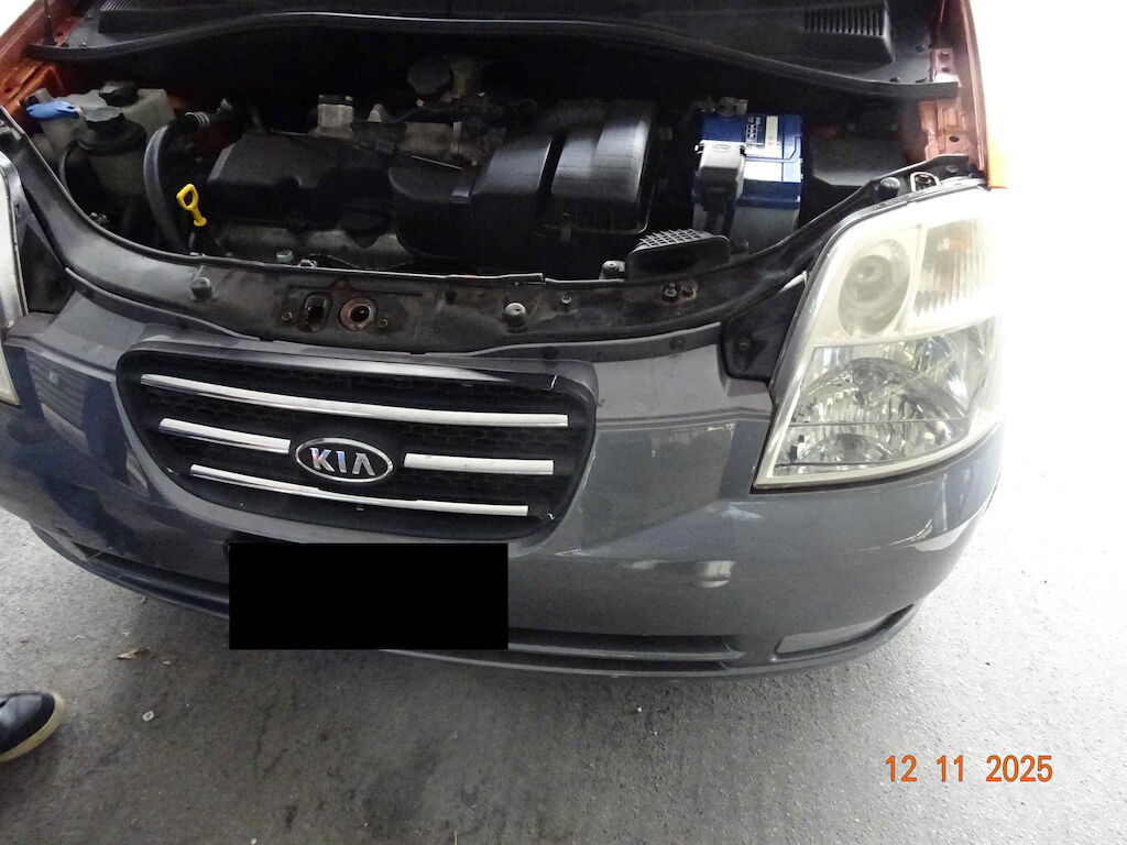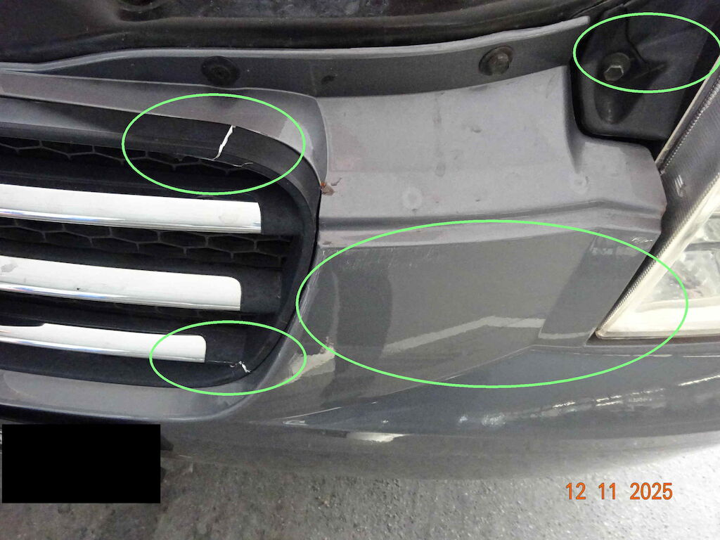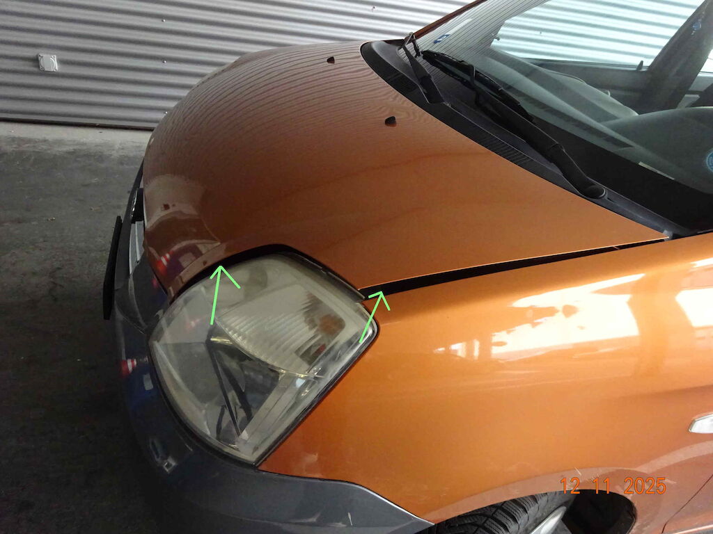 capot, phare avant gauche, tôle frontale, pare choc et calandre endommagée