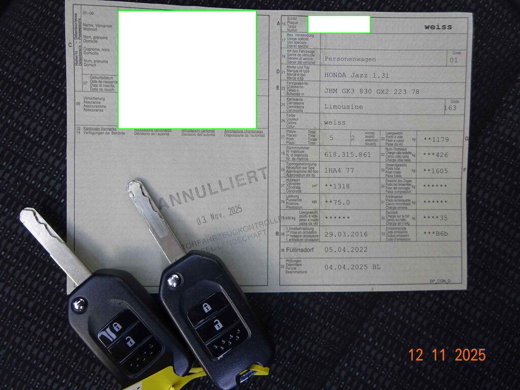 1 Schlüssel beim Fzg. |