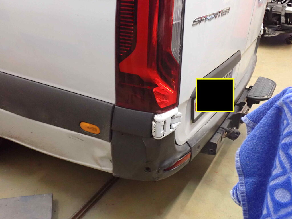 3. Kollisionsschaden: Stossfänger und Seitenwand hinten links eingedrückt