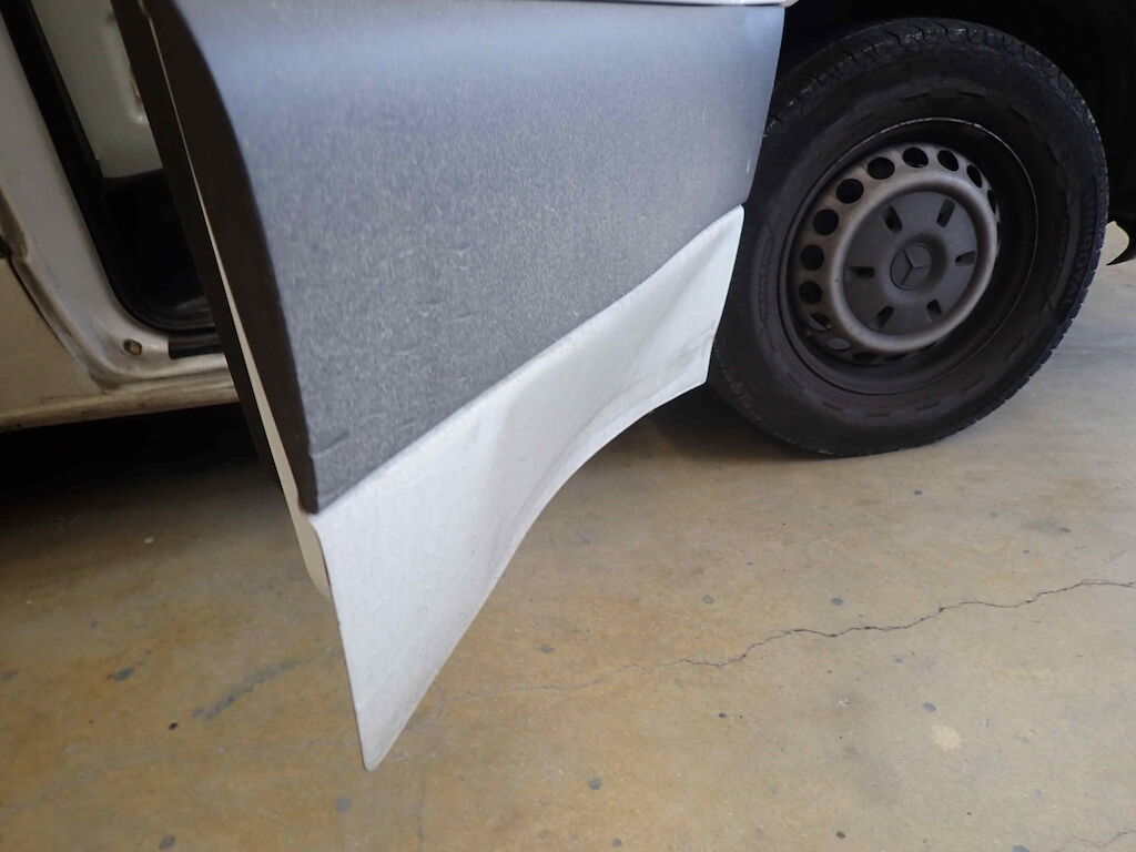 1. Kollisionsschaden: Stossfänger vorne, Radlauf vorne rechts, Türe vorne rechts, Schweller rechts, Schiebetüre rechts Seitenwand unten und oben rechts eingedrückt; Kotflügel vorne rechts Kratzer