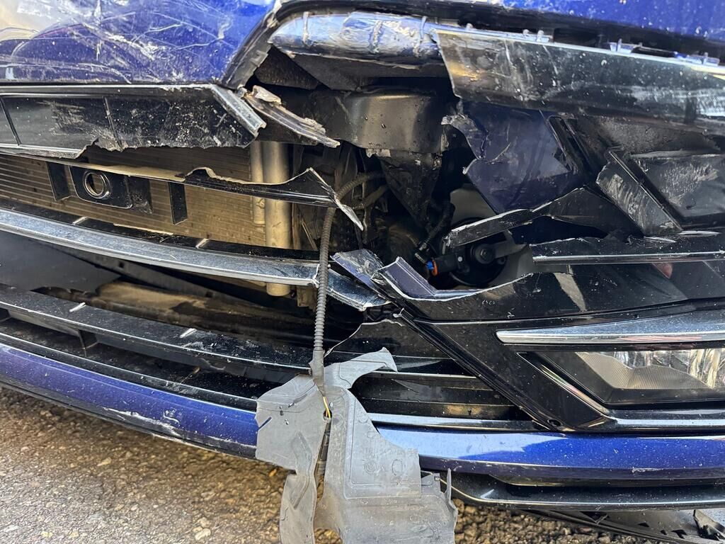 Aufprall in Fahrzeugfront mit Beschädigung von Stossfänger, Motorhaube, Querträger, allen Kühlern, Frontmodul, Scheinwerfern, Fussgängerschutz, Aufhängung vorne allen Airbags, allen Gurtstraffer sowie diversen Anbauteilen.