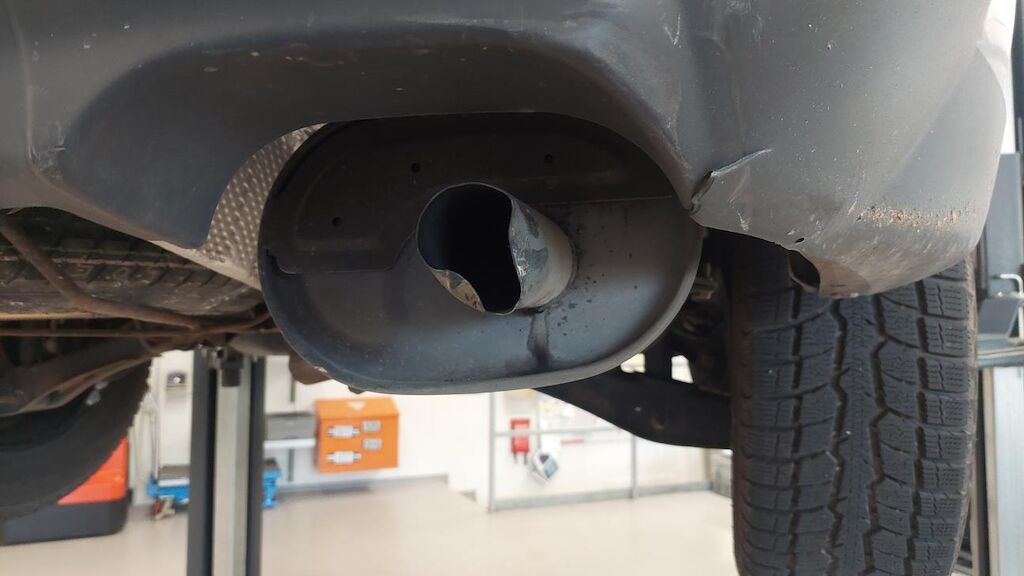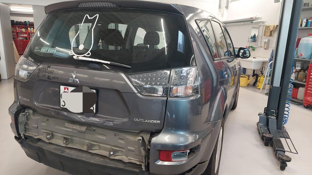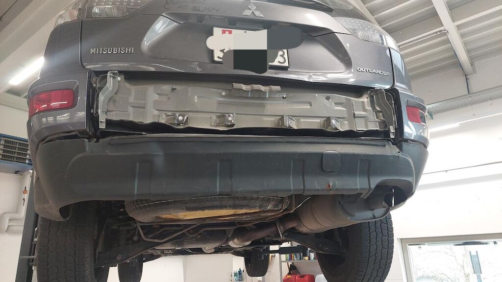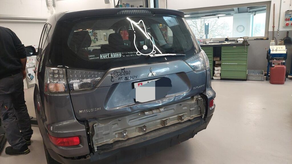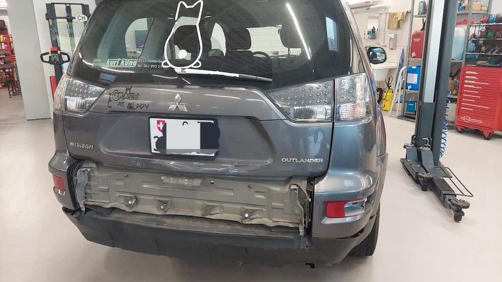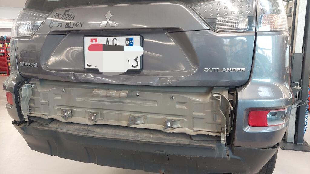 Heckdeckel deformiert, Hecklappeunterteil stark beschädigt, Stossstange hi gebrochen, Auspufftopf hi beschädigt